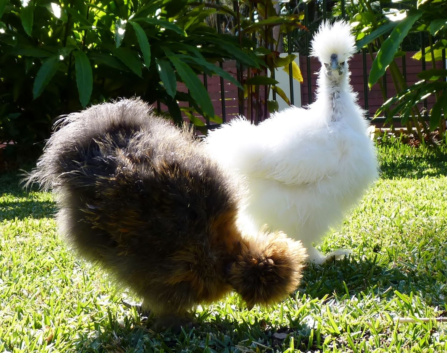 Ok, I posted my black silkies before an it's been awhile I keep second guessing myself on if I got boy or girl or both boys or both girls non have rooish behavior they are 3 1/2 months old but I got a white I believe to be a roo he's the dominate yet skiddish one only one who has waddles an might be streamers he's 2 weeks younger then my blackies