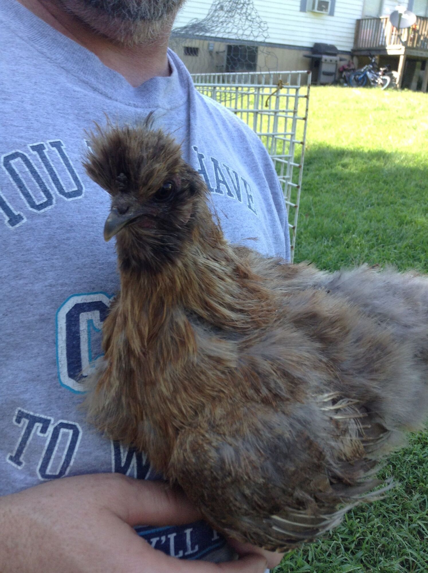 I also made a mistake, he (it) doesn't have a waddle, just the comb so far. I looked at some silkie Roos at the fair the other night and they kind of looked different. Maybe he's not mature yet?