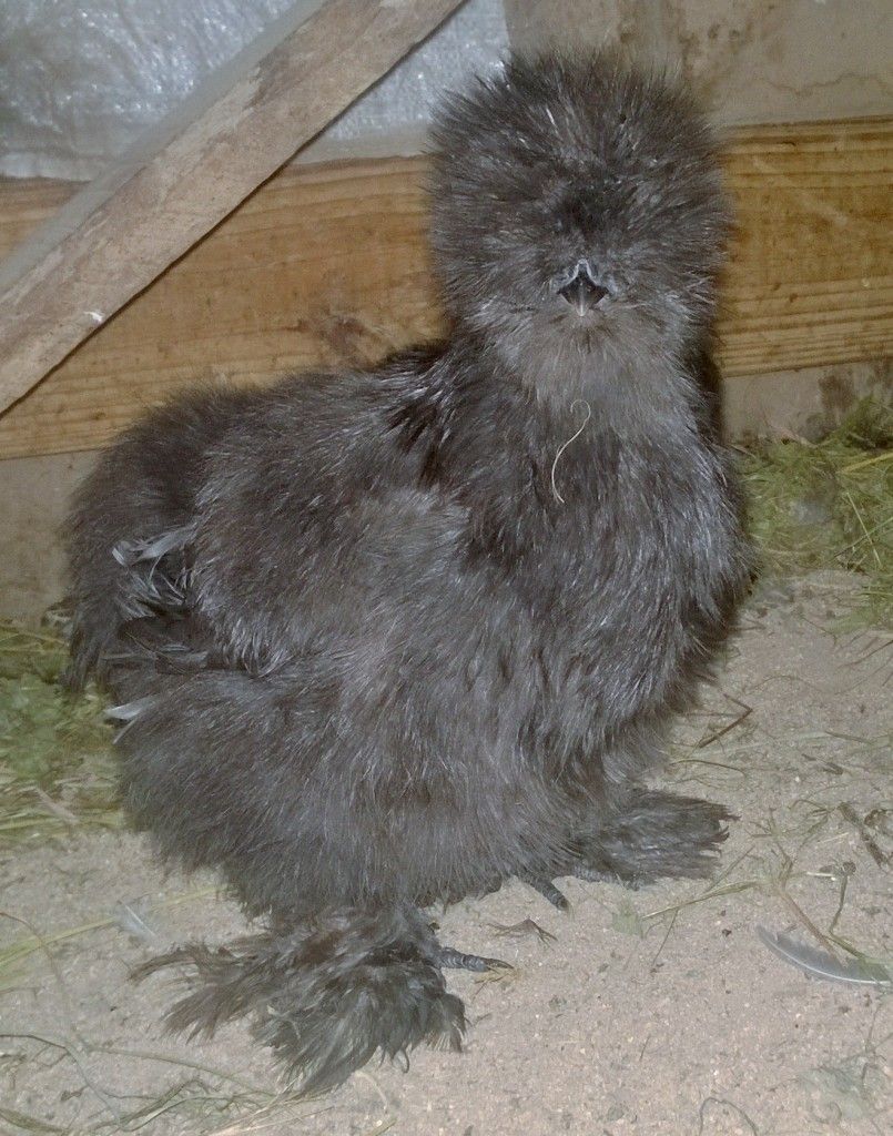 I have a Silkie named Bowie (after David Bowie). I have no idea what the sex is, somedays I think pullet, other days cockerel.