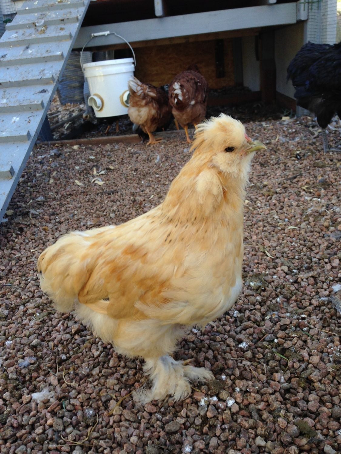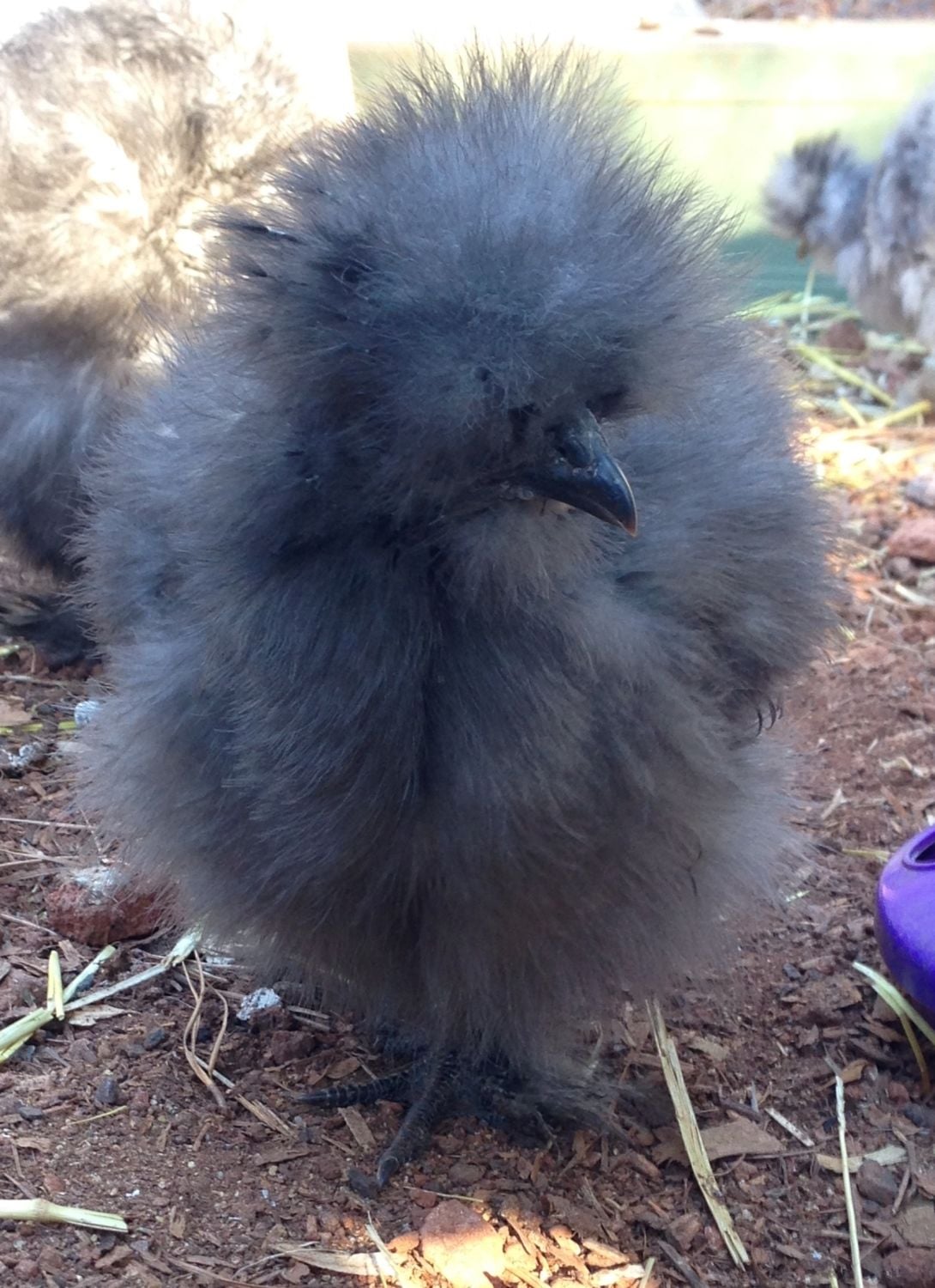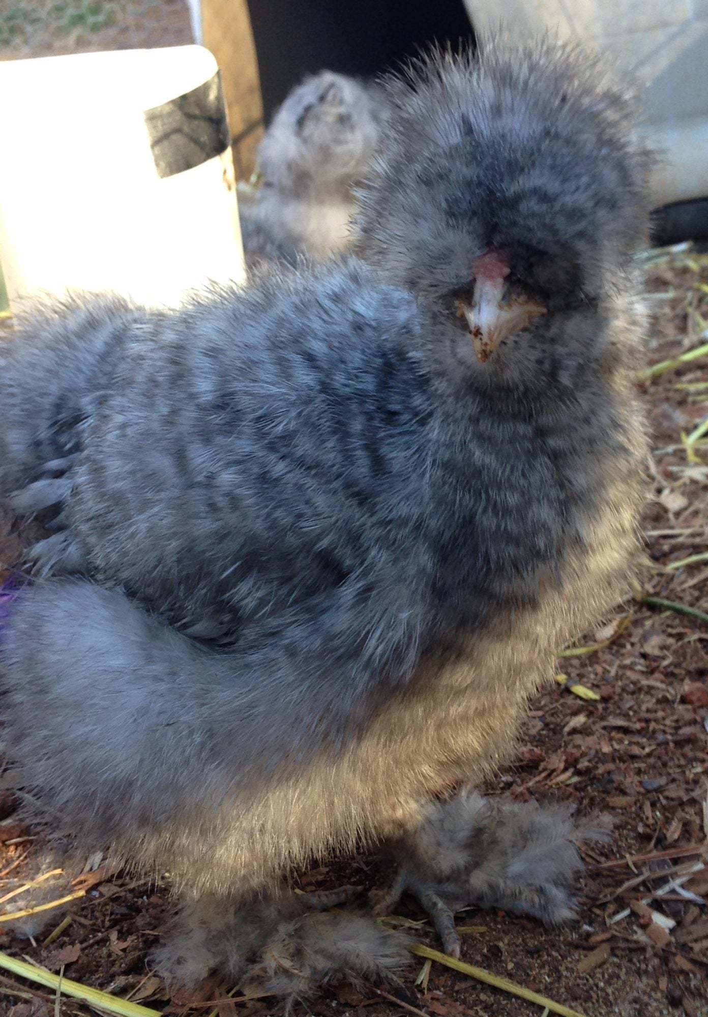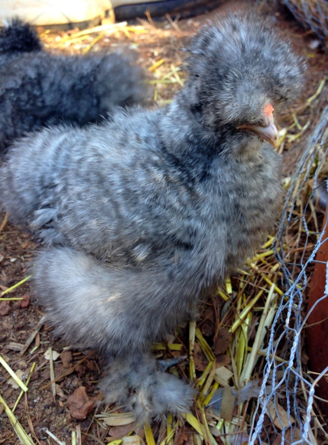 Moo (very curious and the largest of all of the Silkies hatched, so we were leaning towards a rooster, but not sure... also what color is this called? Splash? or Paint? or other?)