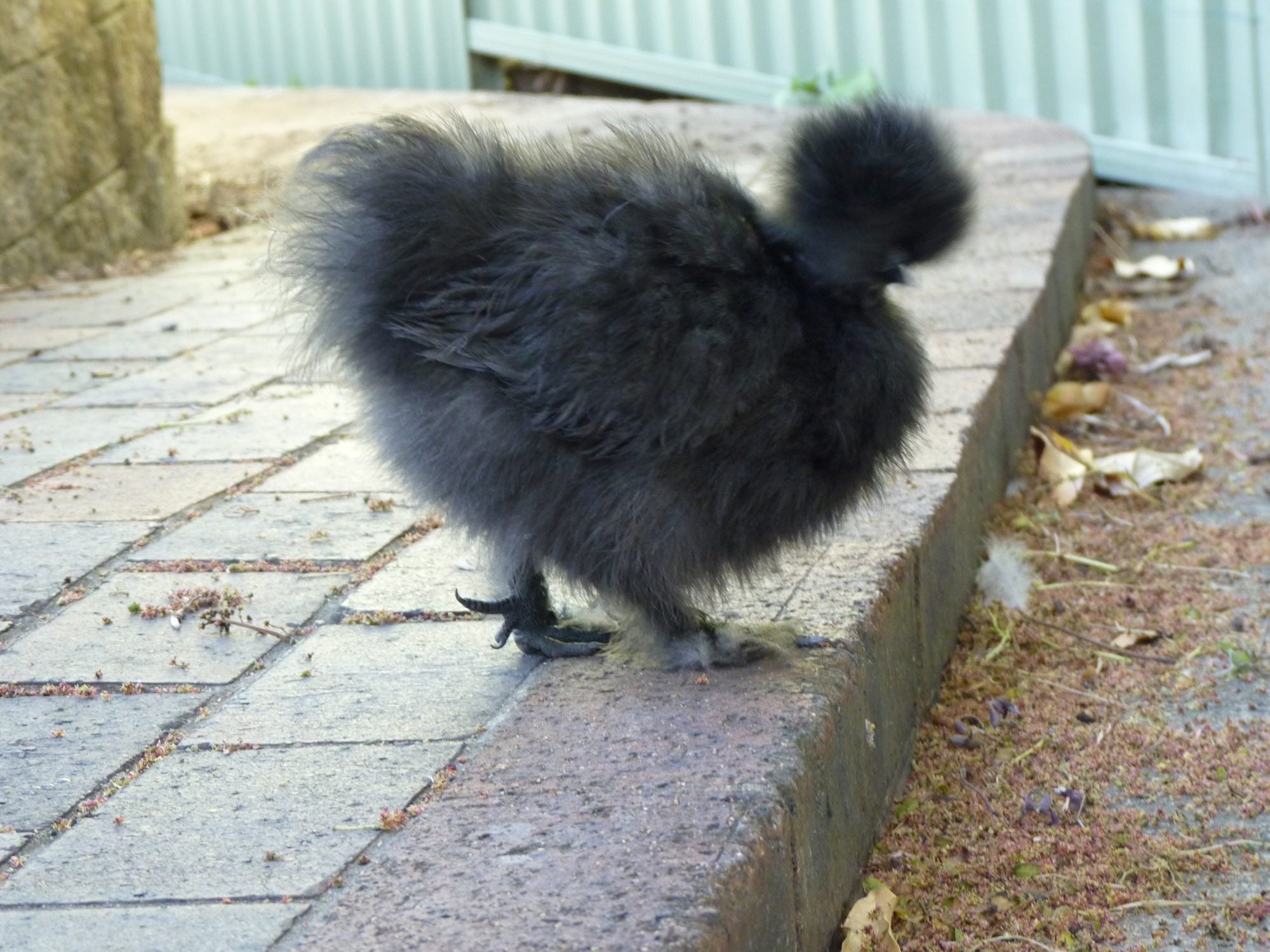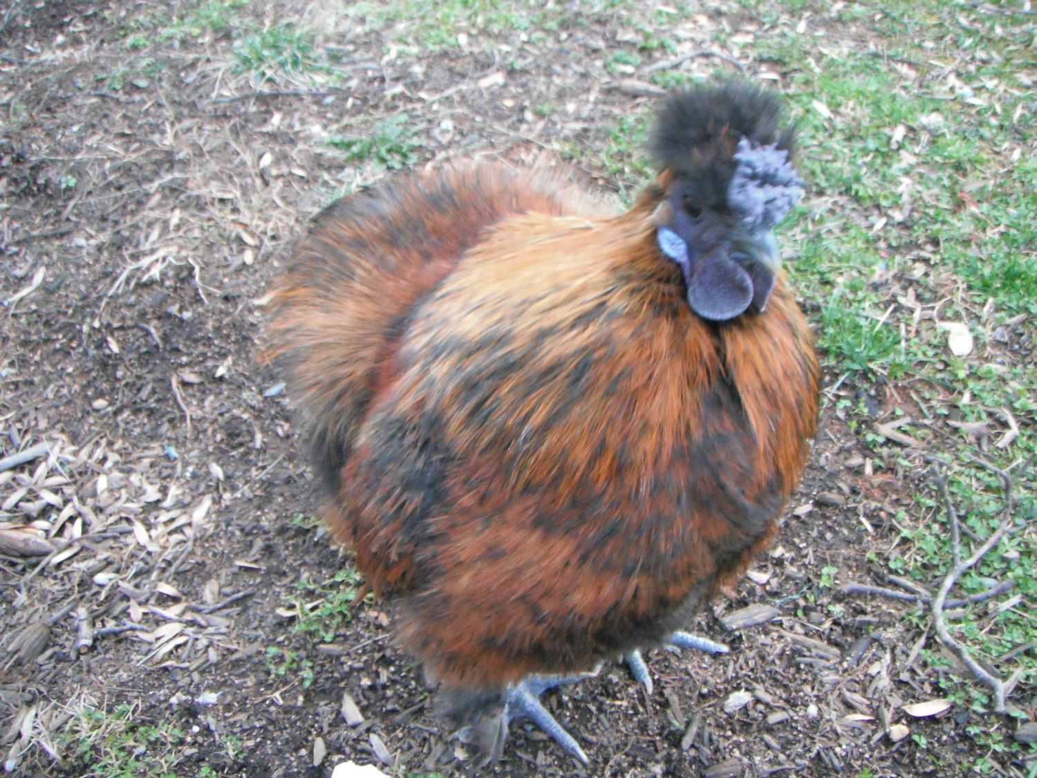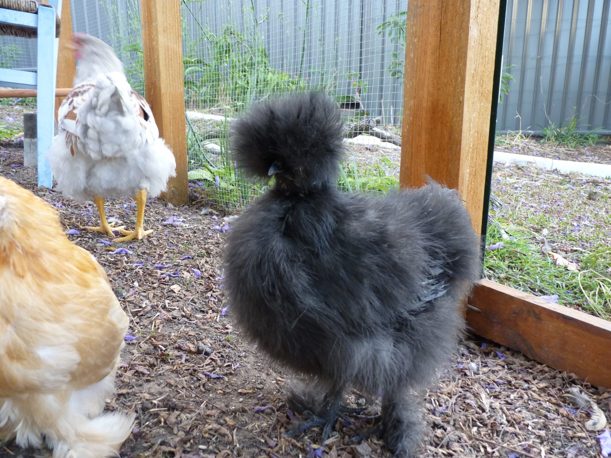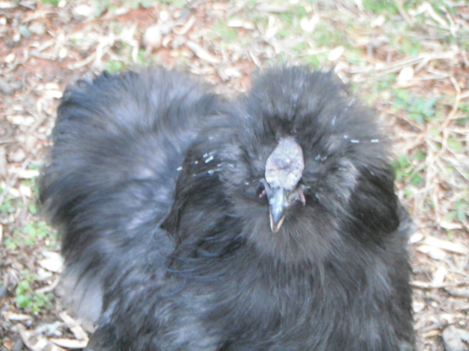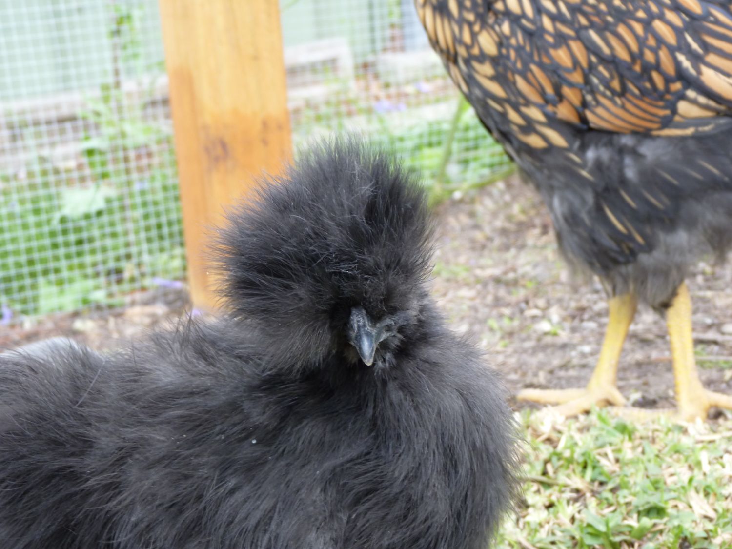 I never got around to posting photos of my four silkies. Today we found an egg so at least one of the four is a pullet. They are about 5 months old. The one I always thought was a roo still seems to be a roo with a large comb and wattles but no streamers. The one I always thought was a pullet still seems to be a pullet. The only bearded one has a small bump for a comb but no wattles or streamers. The fourth has small wattles and a flat red spot in place of a comb. No crowing from any of the silkies but we might not notice with six full sized roosters and one cockerel the same age as the silkies.