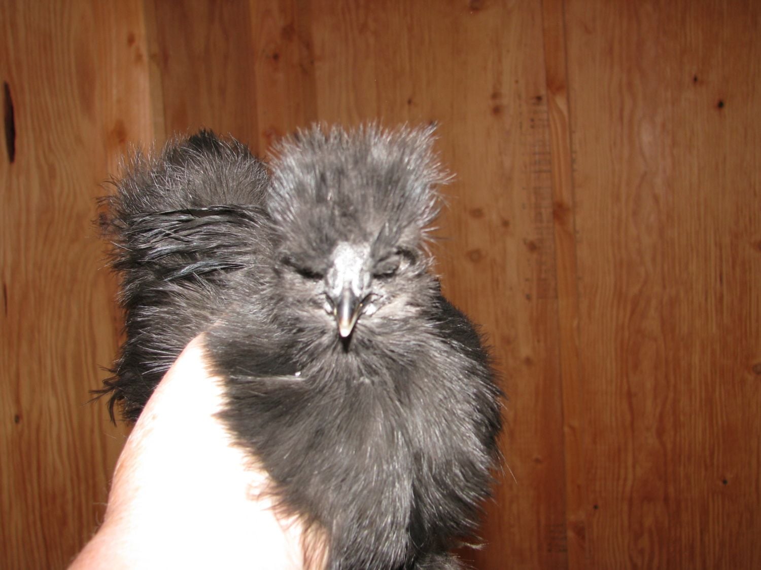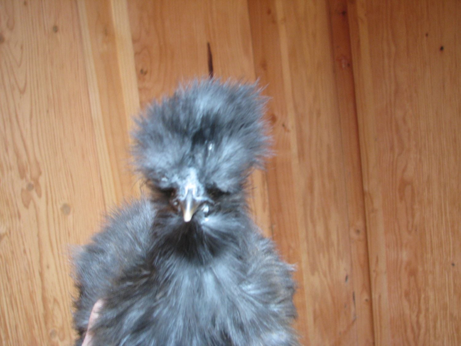 crown not really its more so flat on greyish on top, but she/he is a *****, simply put this silkie has a ***** personality and I NEVER thought a chicken could have personality as a first timer I love my chickens and find it funny how much they do have. we have 1 *****, a stupid but kind chicken, a very curious one, a follower to the curious 1 )and 2 trouble makers chickens too. lol. So many different personalities non of which shout roo's or pullets to us cus Red the oldest and for a Roo he is the gentlest of all the chickens we have. Him and our kitten play together. ( both are the same age though)