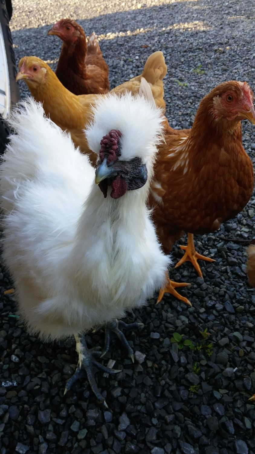 I got this trio in March from Tractor Supply and they were labeled as "Bantams". Well, since the biggest boy is now bigger than my year old EE hens, I think the whole "bantam" idea can be chucked out the window! Both boys are noisy, and the smaller (Stan) has very iridescent blue ears, and a bluish beak and feet. The bigger boy (Randy) has very dark purple ears and wattles and blackish feet. Then there's the hen (Sharon). Recently I've noticed that her comb and wattles are very red. What could this mean? I'll try and get better pics of the boys today. They both have HUGE combs already.