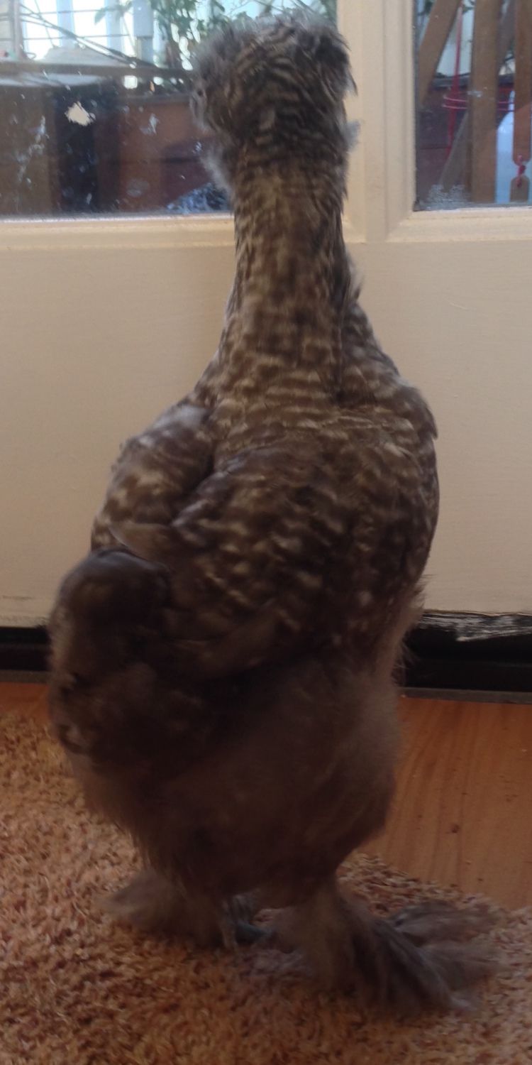 8 week old Paint silkie. I'm thinking cockerel based on the prominent comb. My other doesn't show one at the same age and is smaller.