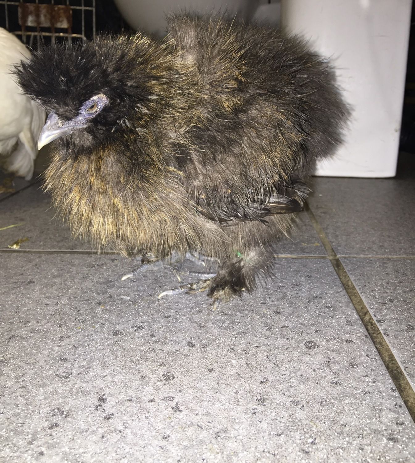 I had my 3 silkies in my bathroom yesterday because I was blow drying them. They decided sitting out in the driving snow was a good idea and I got worried because they were so wet and the north wind was cold.