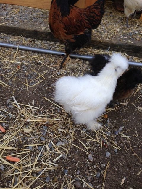 Mine are 16 weeks I know for a fact that I have one hen which your white one resembles so I'm going to say hen , do you have a better pic of herSilkies he/she? I tried to find out on a different forum, no response, sorry to repeat. I have a white silkie (salt) and a blue (pepper). They both seem low to the ground. The white one I did notice had a little of red at the beginning on head then turned burgundy than dark. The blue no change. The crown hair just developing in last week. Got from craigslist from local farm (my daughter picked up). The age is hard to be-sure but estimating 15 weeks approximately. The still peep a lot. Since new to silkies not sure what sound they make when older.Thanks!![]()