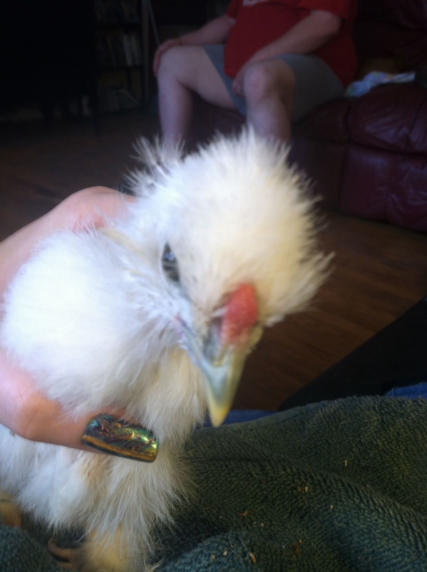 New to chickens and to the forum, but looking for help/confirmation. Happy owner of 3 silkie chicks, roughly almost 3 months old now. I am pretty sure that the porcelain (?) color is a roo based upon behavior and sounds, but would like to hear thoughts from tose with more experience. Behaviour: bossiest of the bunch by far, also the bravest when comes to exploring new areas or the yard or pen. Walks very upright and recently when voiced a protest over being picked up, released a very deep baritone sound - especially compared to my 2 white silkies who are still very soprano and quite submissive to the porcelain.