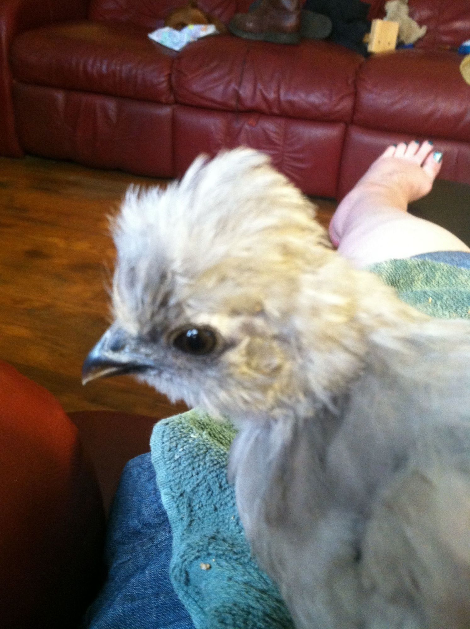 Hello All, New to chickens and to the forum, but looking for help/confirmation. Happy owner of 3 silkie chicks, roughly almost 3 months old now. I am pretty sure that the porcelain (?) color is a roo based upon behavior and sounds, but would like to hear thoughts from tose with more experience. Behaviour: bossiest of the bunch by far, also the bravest when comes to exploring new areas or the yard or pen. Walks very upright and recently when voiced a protest over being picked up, released a very deep baritone sound - especially compared to my 2 white silkies who are still very soprano and quite submissive to the porcelain. (Is porcelain correct color name? has cream, gray, silver and some russet?) Absolutely beautiful bird with the coloring, stance and very large clear dark eyes, my "prettiest" lol, but will be looking to re-home him if a roo as can't have the noise per my zoning (and neighbors).... photos below and thanks for your help!