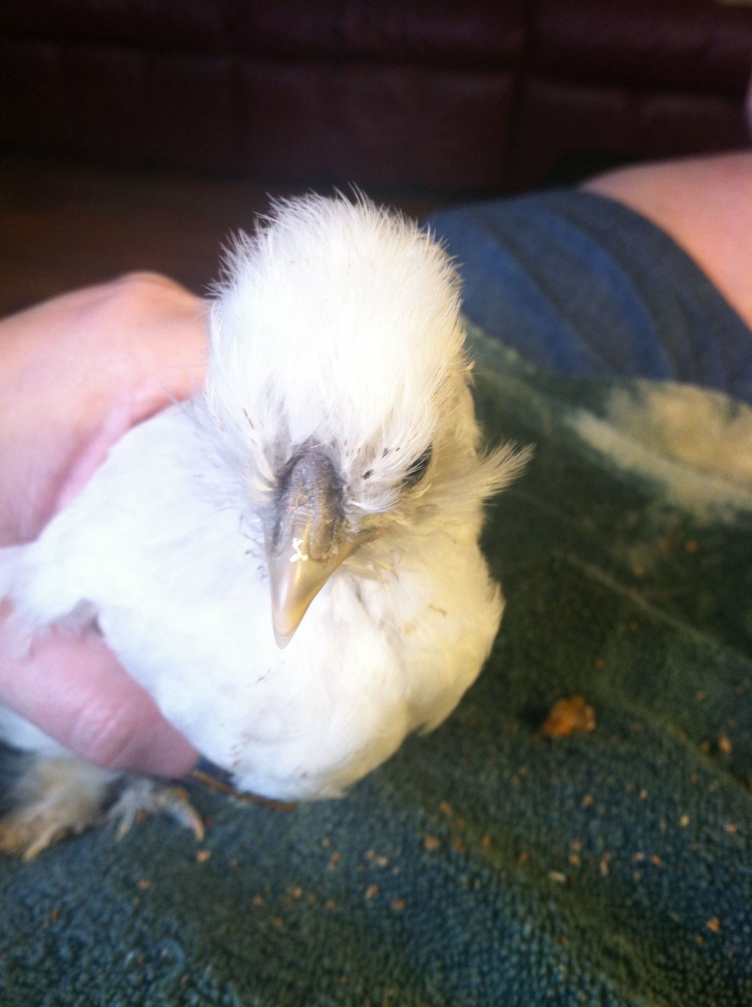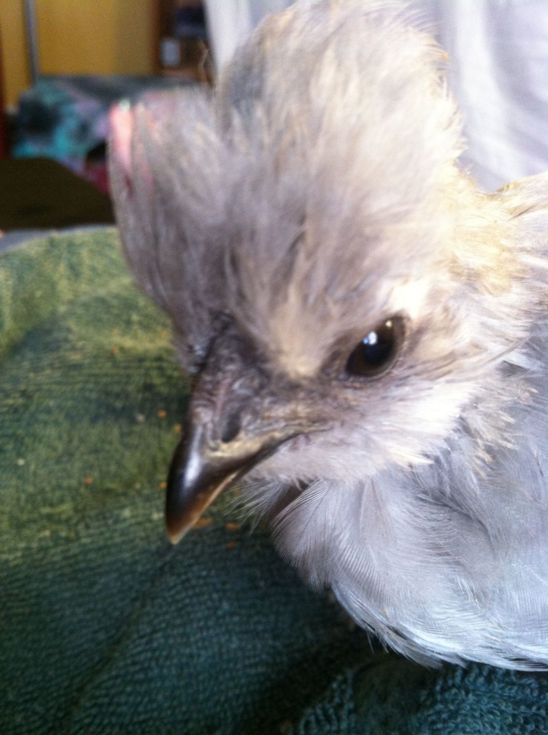 Thanks, what about this 2 month old? It's got a cross beak and is missing an eye, but growing quite well.