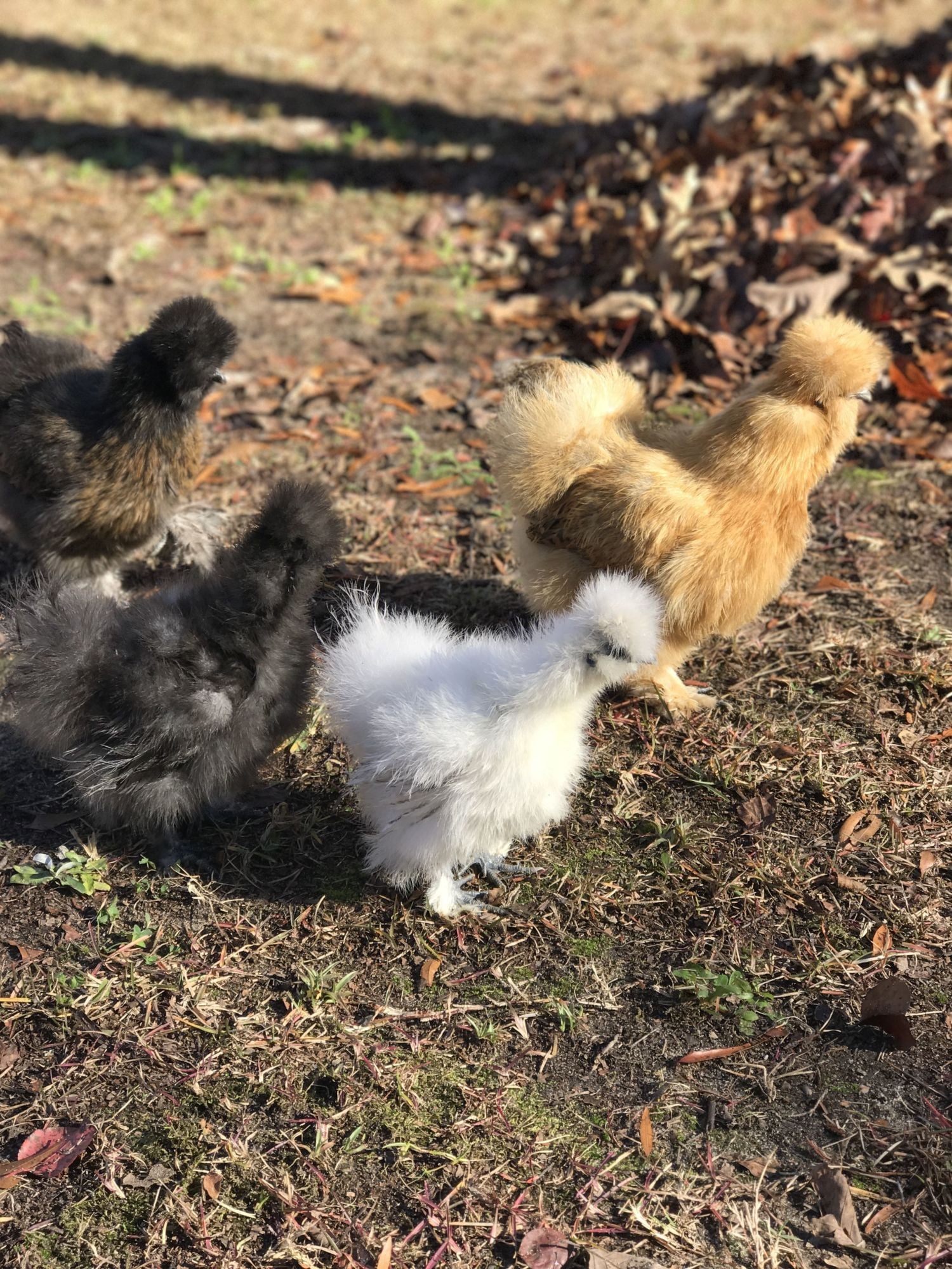 This silkie is 11 weeks old in these photos, and she/he is 14 weeks old today. There hasn't been any real change.