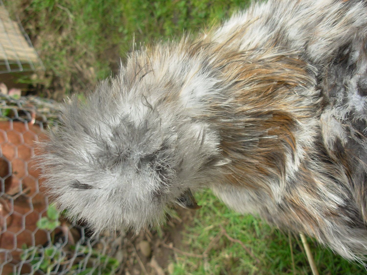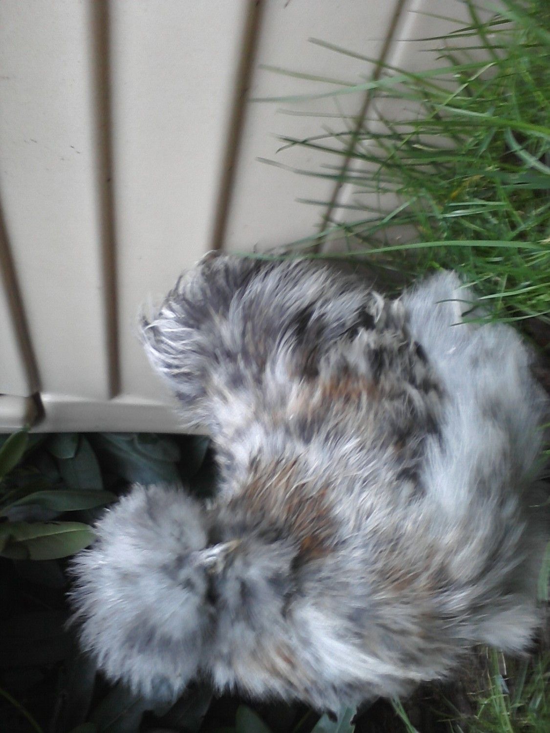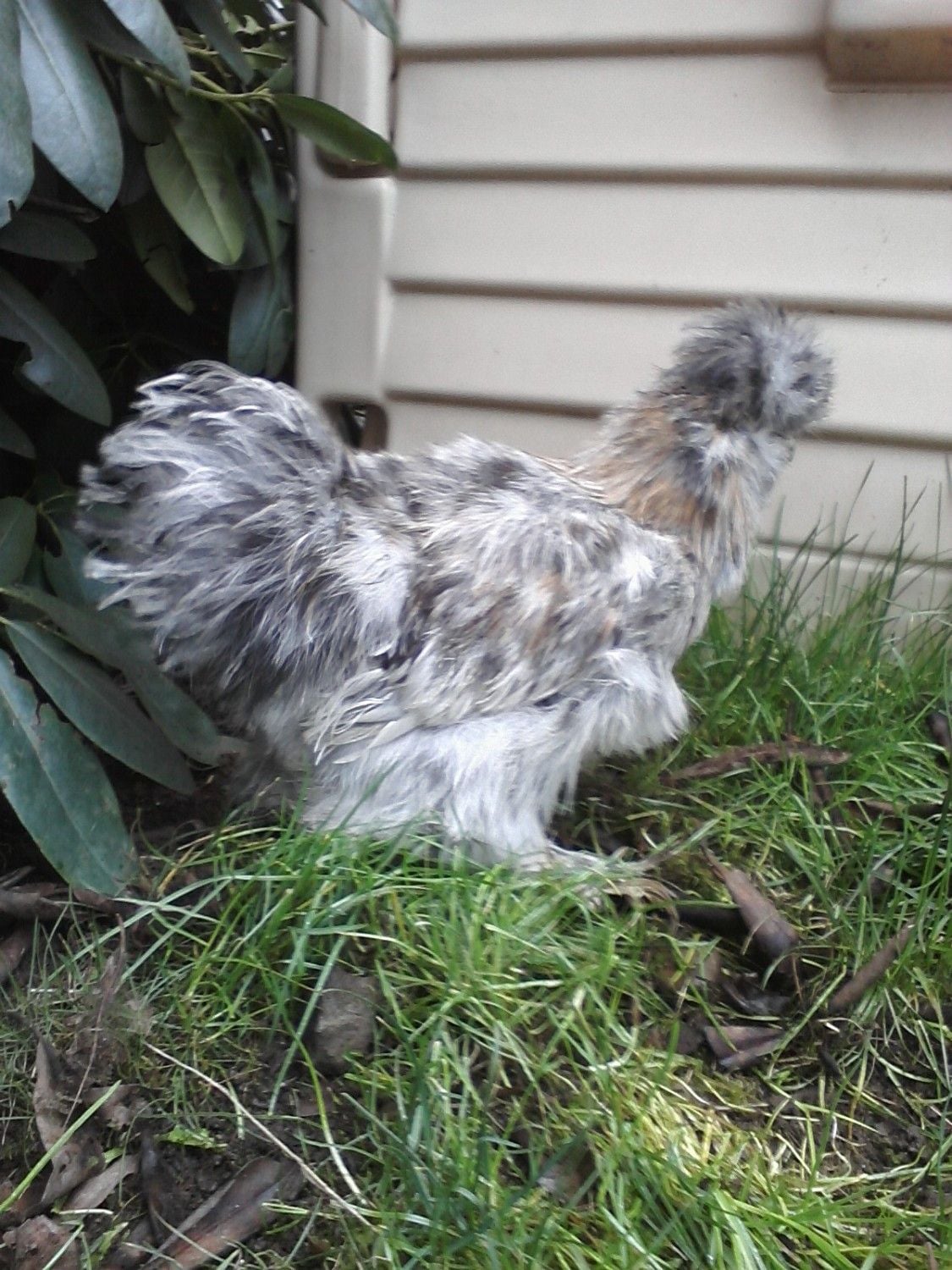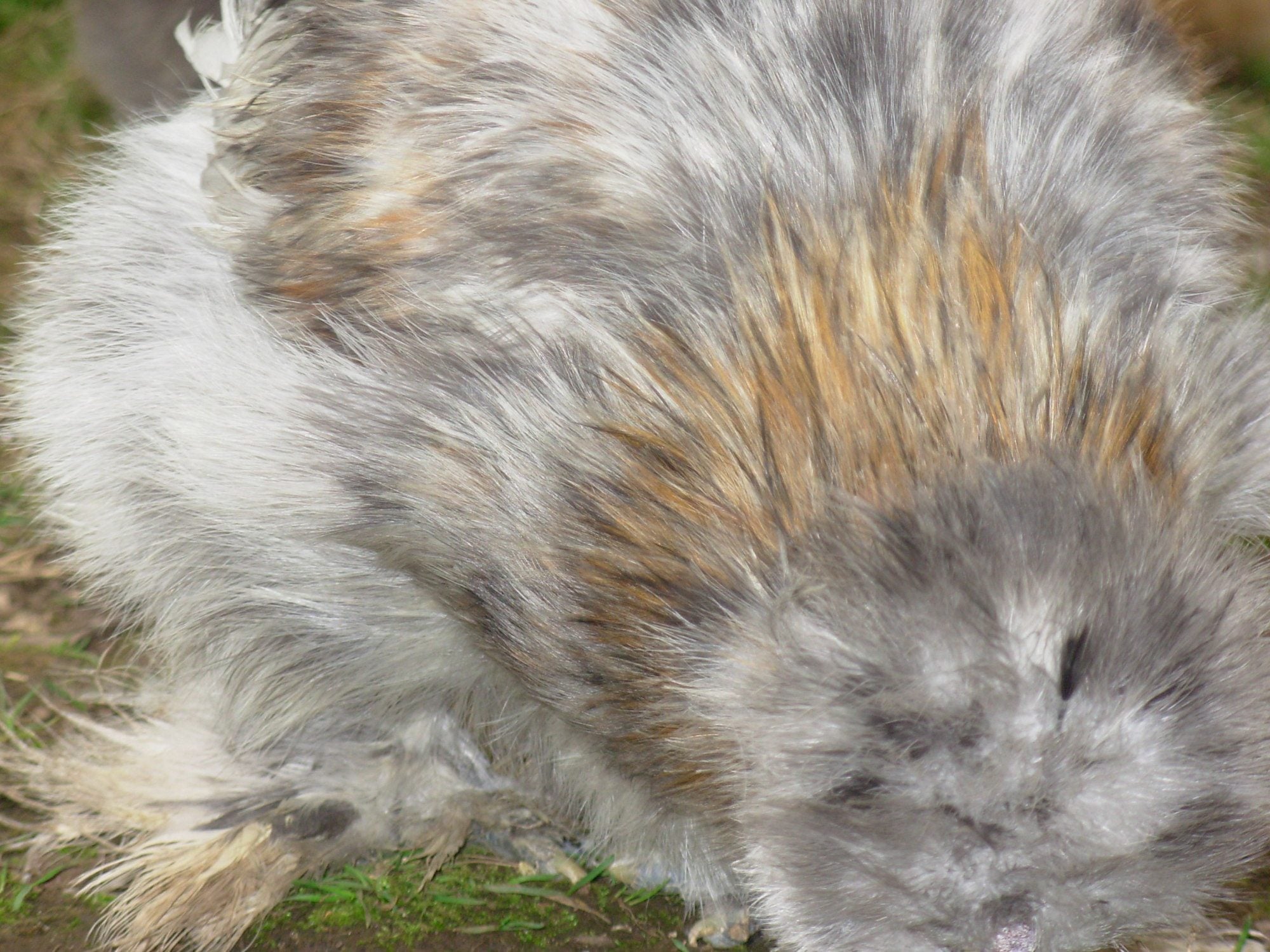 Pullet or Rooster? Calico Silkie. I see more color in the comb today. I am totally suspicious.