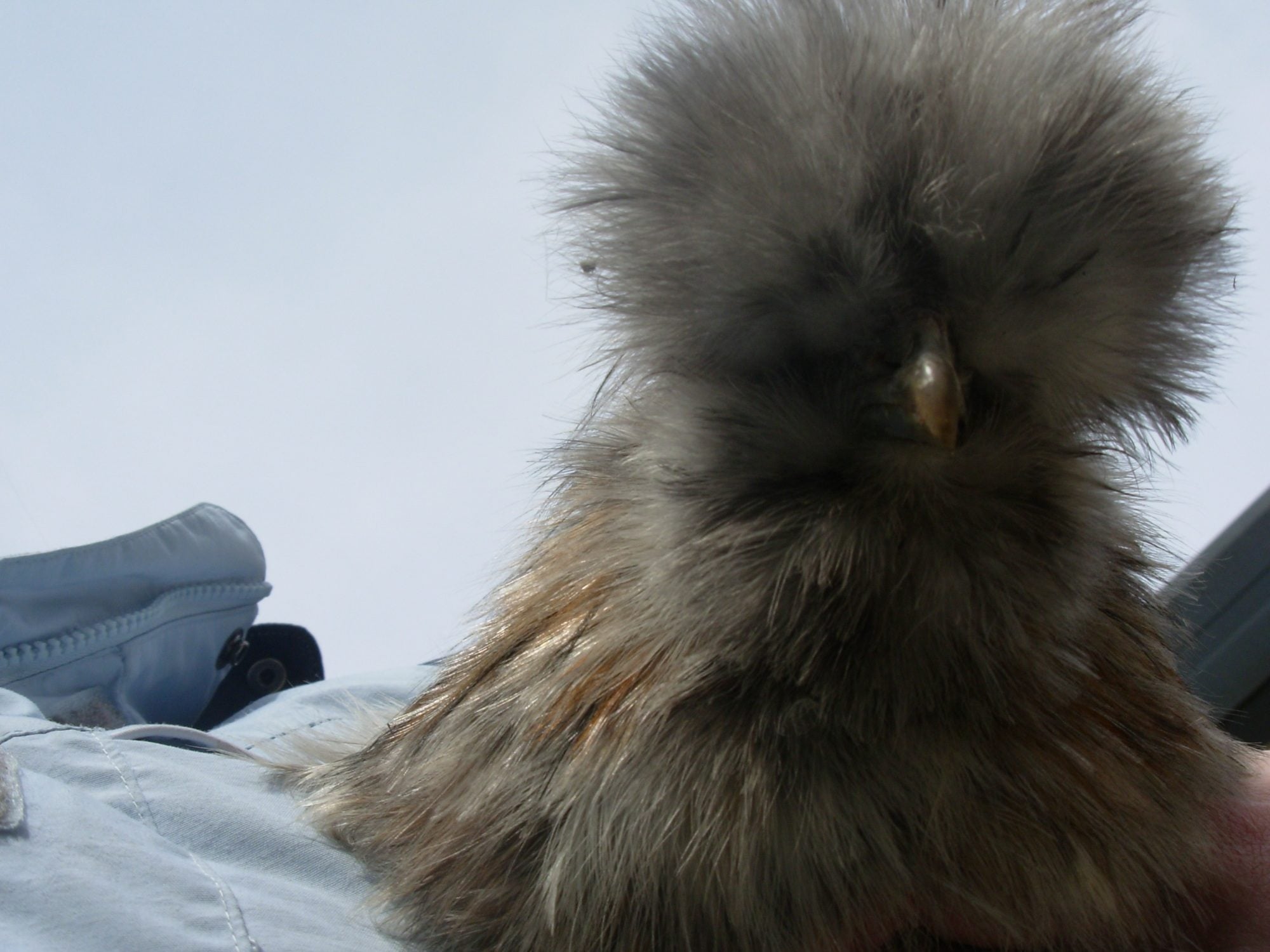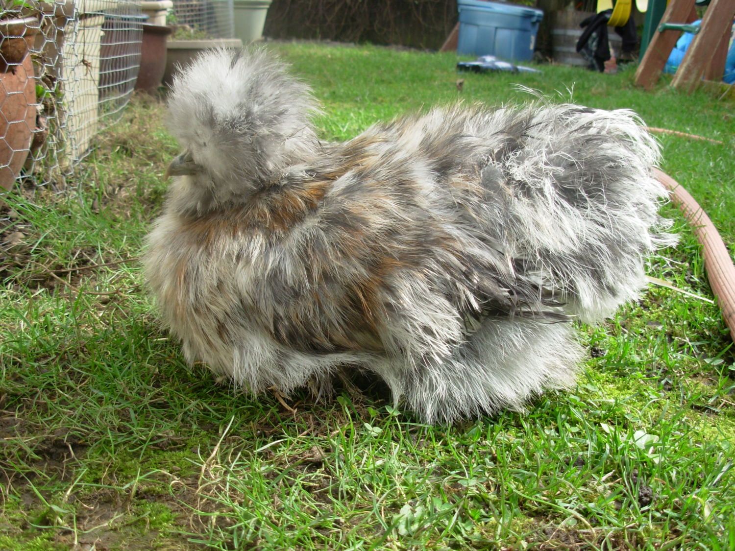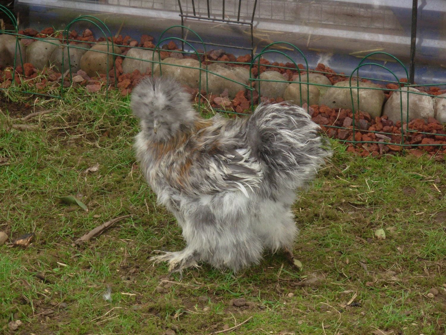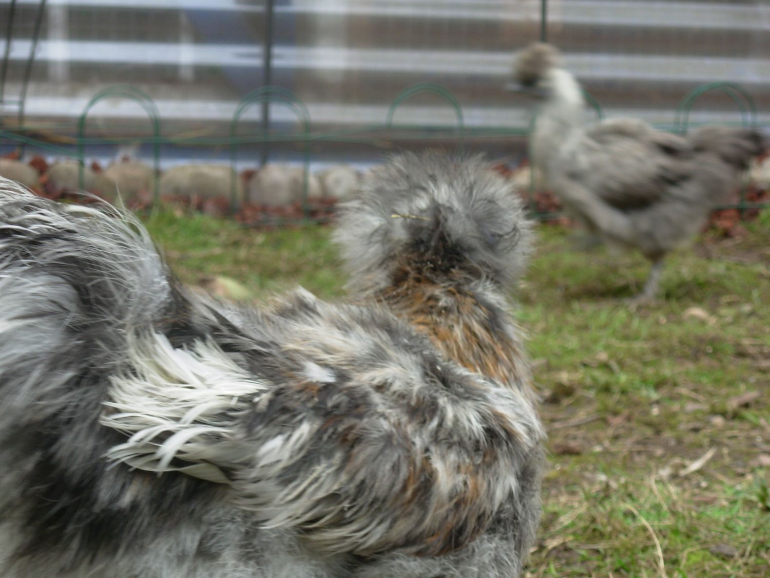 Pullet or Rooster? Calico Silkie. I see more color in the comb today. I am totally suspicious.