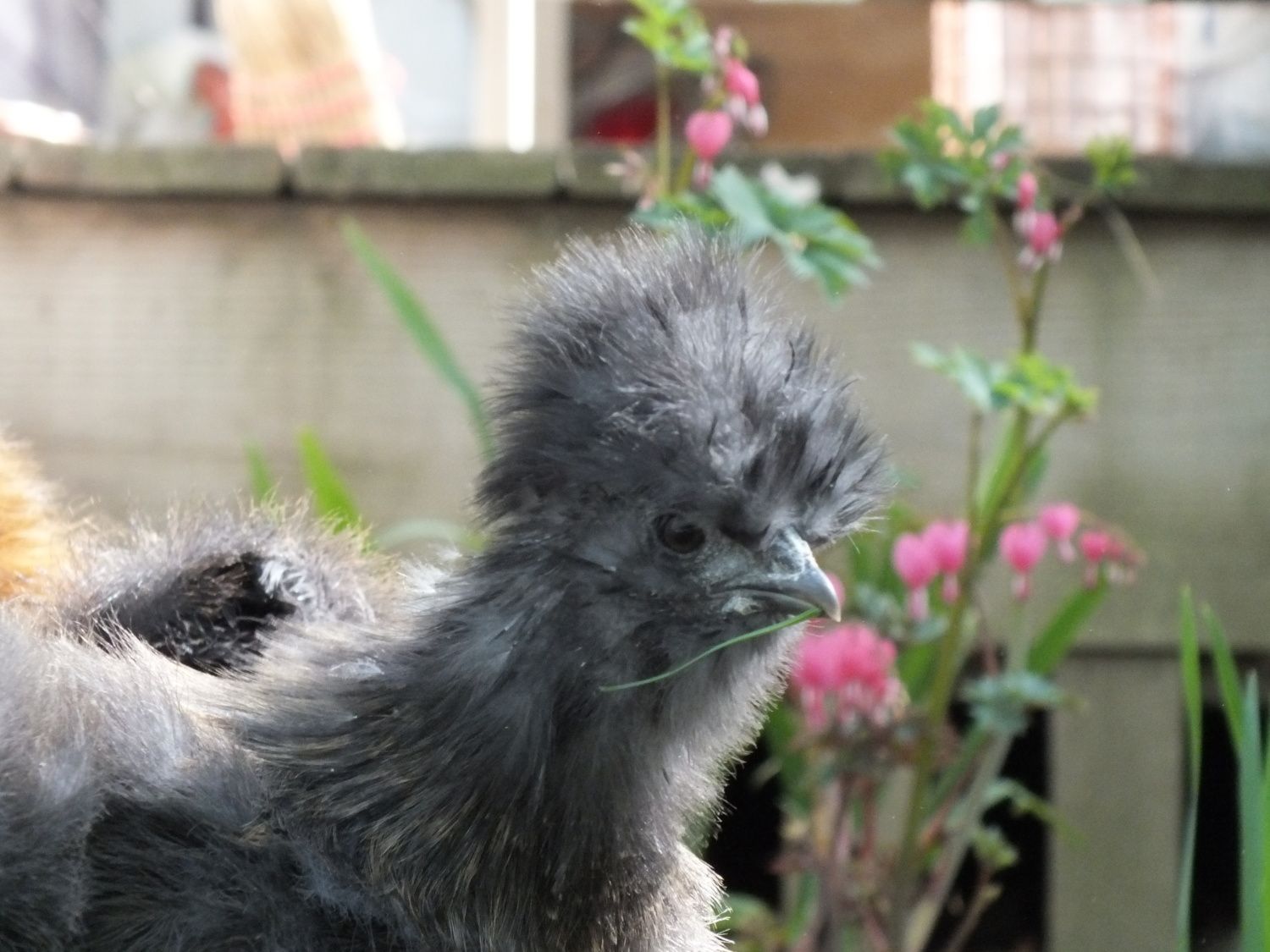 Oh why do silkies torture us so! In the first pic, that neck stretch pose is very roo'ish, so if he/she is doing it a lot, I would say boy. I don't see any signs of boy feathering yet. I have an 8 week old hatchery silkie that "acts" all girl. No posturing at all except when chest bumping it's little friends, but I know anything is possible with silkies.