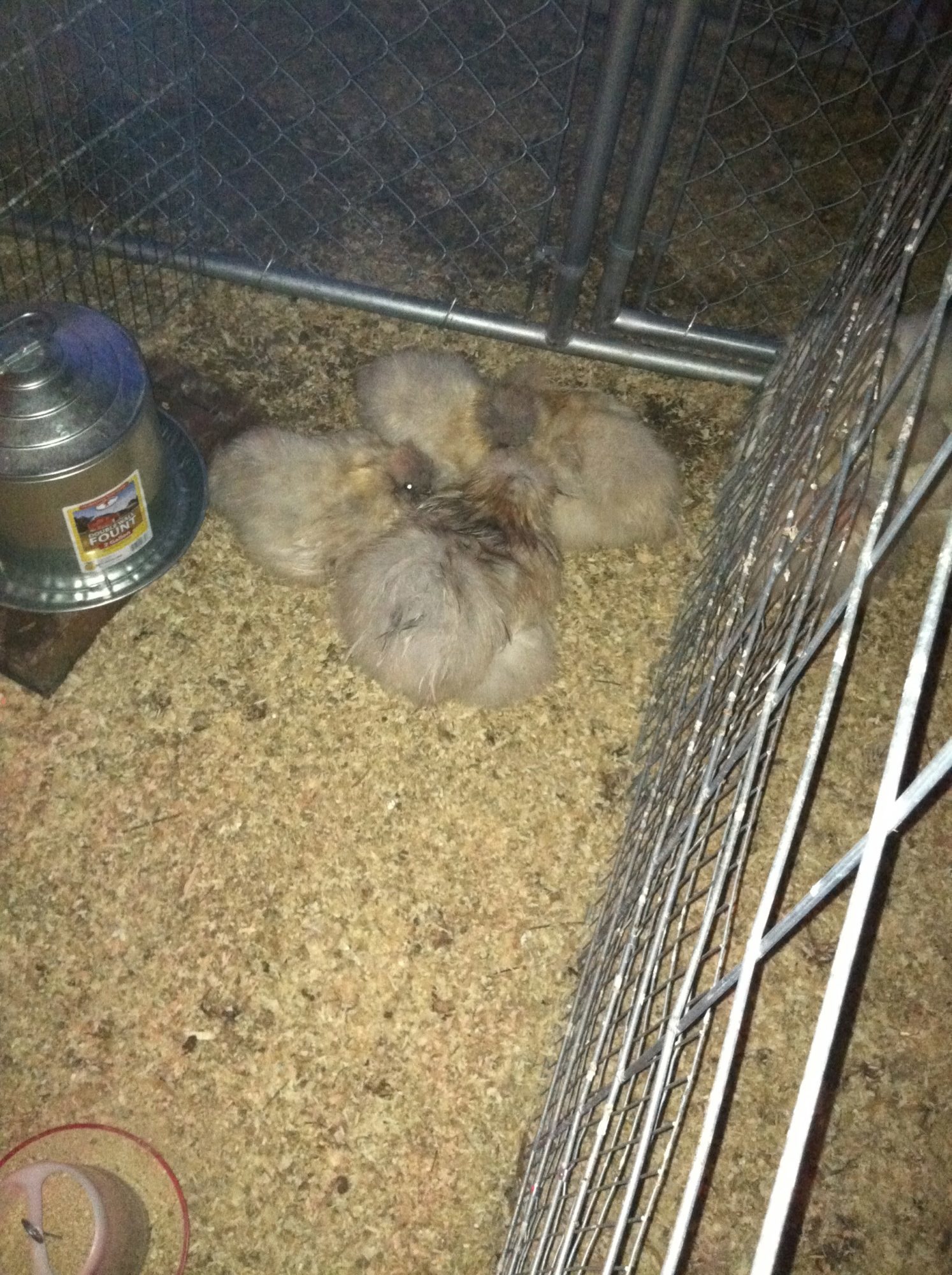 Rookie, Silkies aren't known to roost, their feather structure on the wings is such that they can't fly, so they mostly just pile up in the corner.
