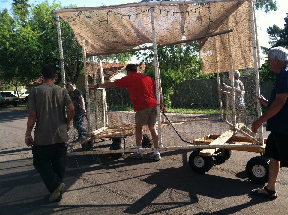 That's me hidden in the back, my sons in front and my dh at the back. My neighbor's dh is in the middle, and she took the picture.