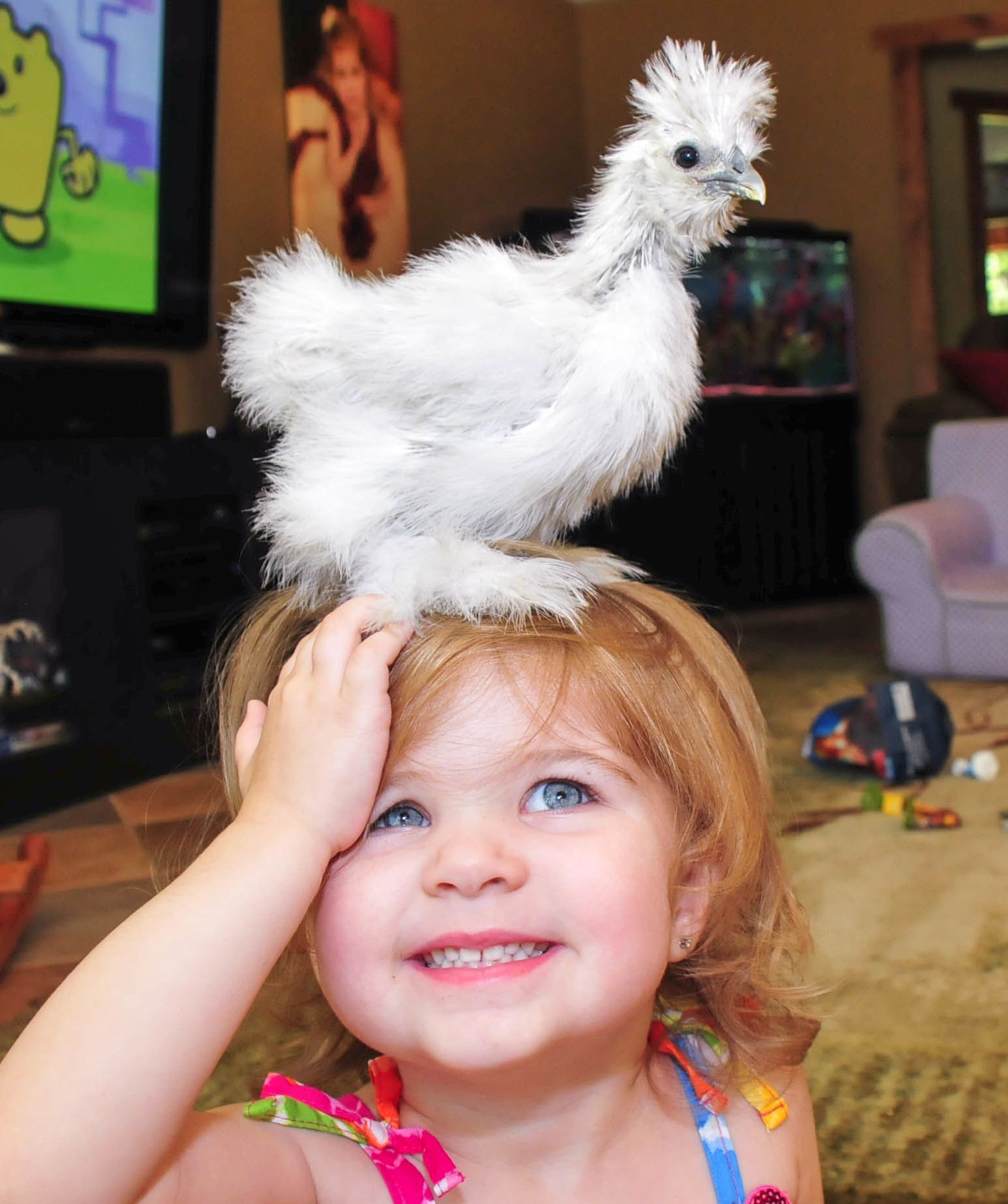 Curly is my rooster, the splash belongs to the farm.