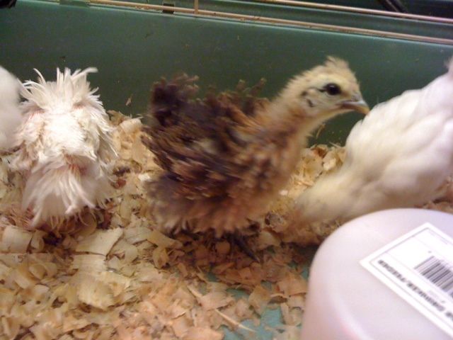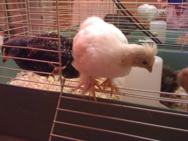 Thanks. Your girls are very pretty!No idea but it looks an awful lot like our White Wyandotte girls we just got. As I was trying to figure out what those pullets where, I discovered that the White Rocks also look alike. But then again, maybe the white color on your chick comes from the Silkie side and the other half could be anything..?