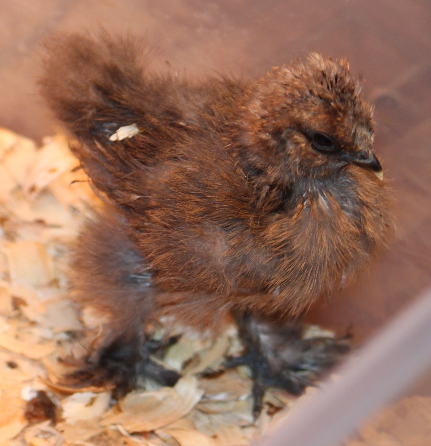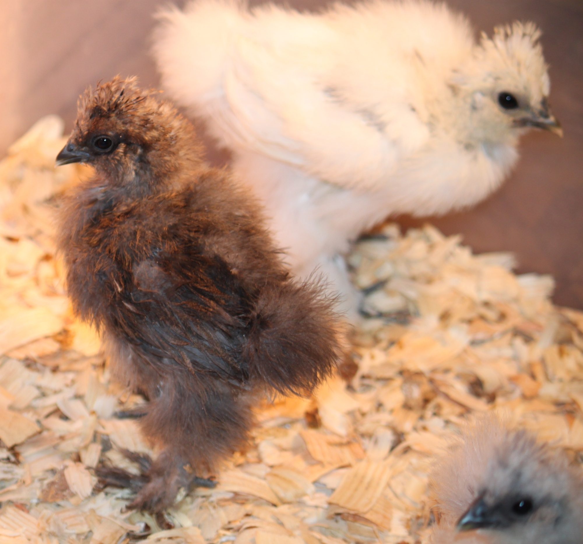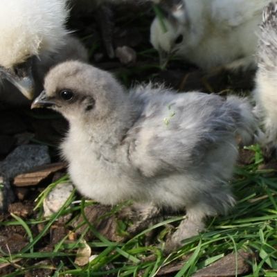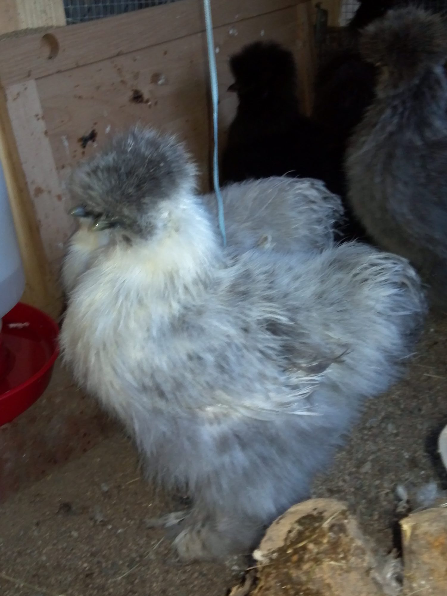 My silkie chicks...4 weeks tomorrow :) I have one I'm unsure of the color, thinking blue partridge, but I'm not sure. This is a tiny bird, came from an itty bitty egg I never thought would make it to maturity and at the end had to help hatch. What color do you think 'she' is?