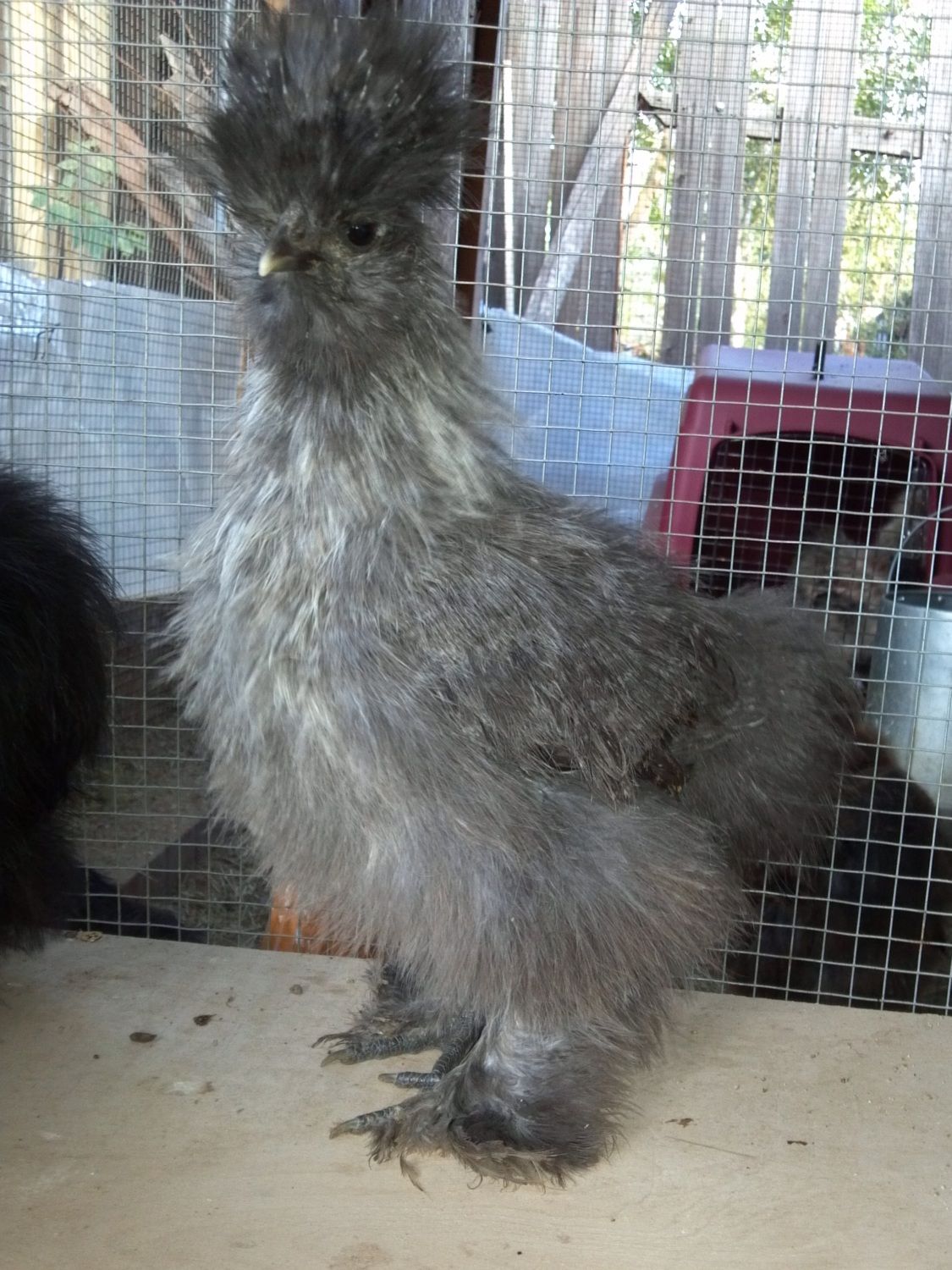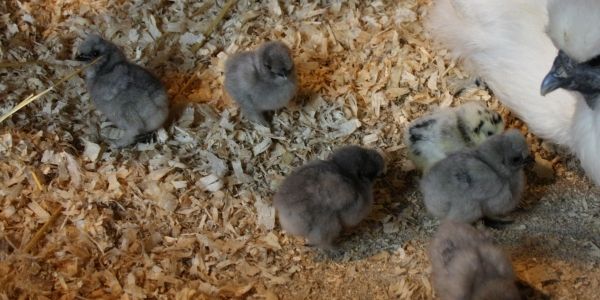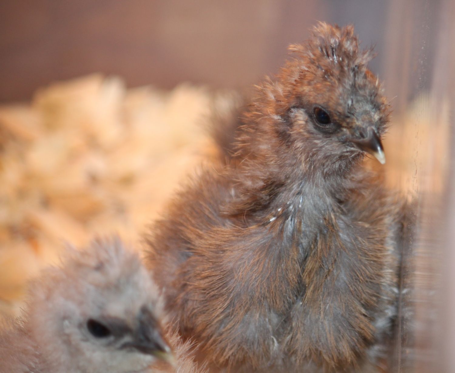My silkie chicks...4 weeks tomorrow :) I have one I'm unsure of the color, thinking blue partridge, but I'm not sure. This is a tiny bird, came from an itty bitty egg I never thought would make it to maturity and at the end had to help hatch. What color do you think 'she' is?