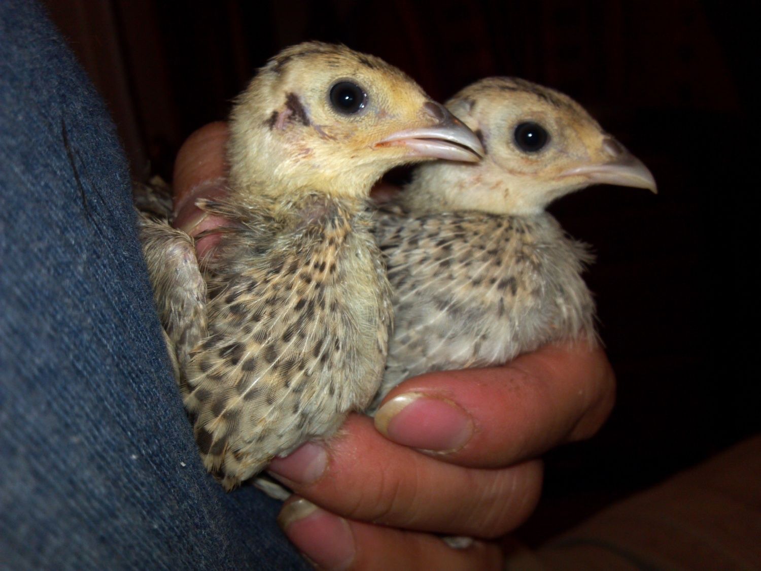 And my two baby pheasants...I'm adding their picture here because they are being raised by the best silkie hen. She incubated the eggs and has been taking care of them from day one.