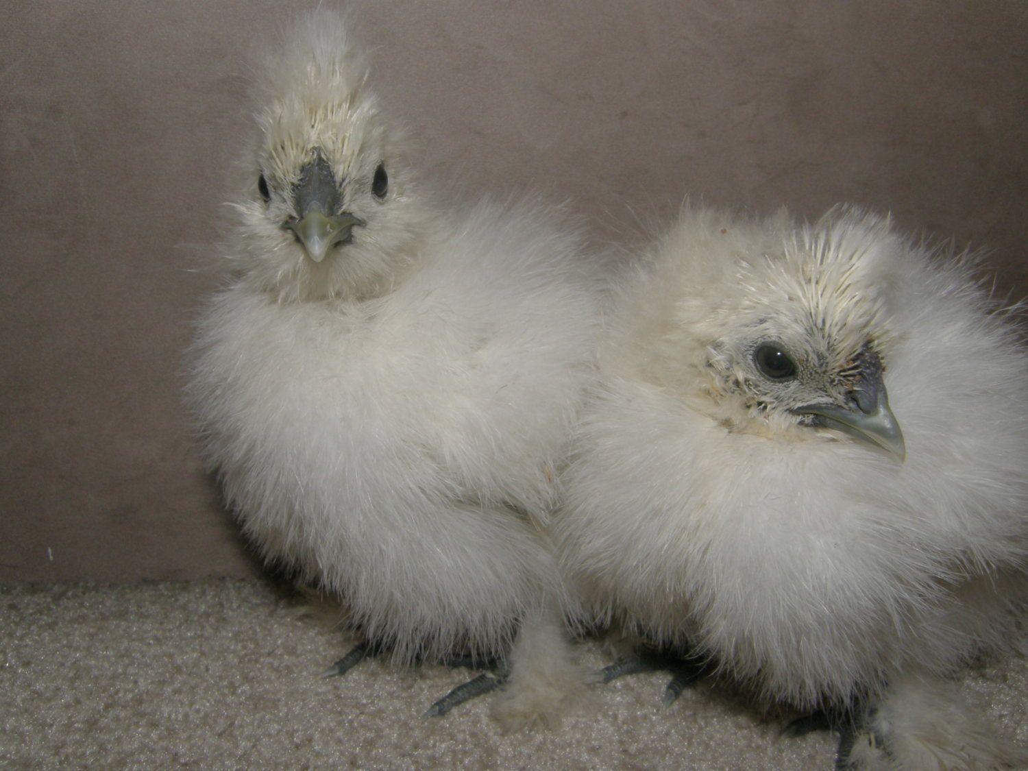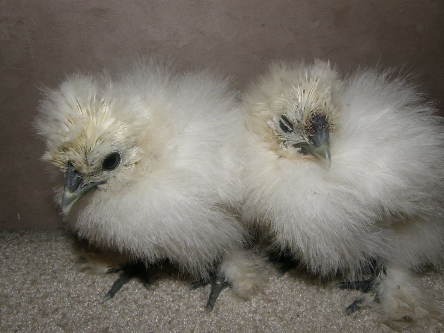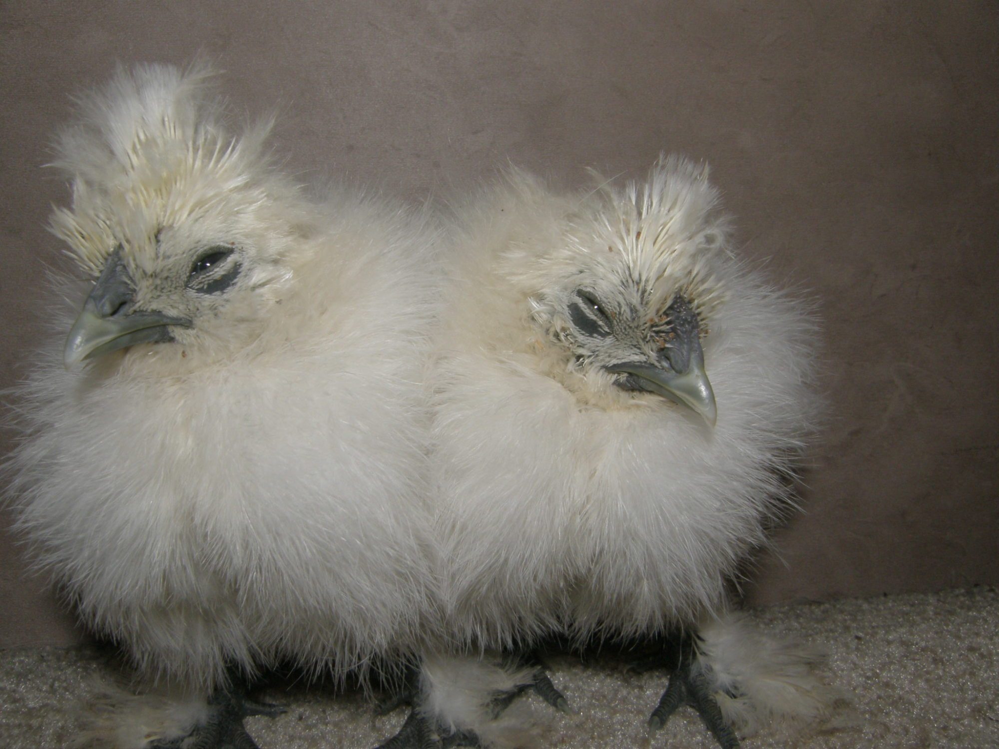 My little 6 wk old babies got caught in the rain. Thankfully I was not gone long. You would think they would go inside the coop, but the older ones did not and they follow them, so I came home to some drowned chickies. I grabbed three of my 4 silkies (the other was not shivering and drying herself off) and took them inside to blow dry them out (low heat). They acted like they were at a spa...they loved it. Anyway they came out nice and fluffy, so I thought it would be a good time for some pictures. I would love some opinions on their sex. I know it is too early, but I see differences in their combs so my thinking is I have one of each?