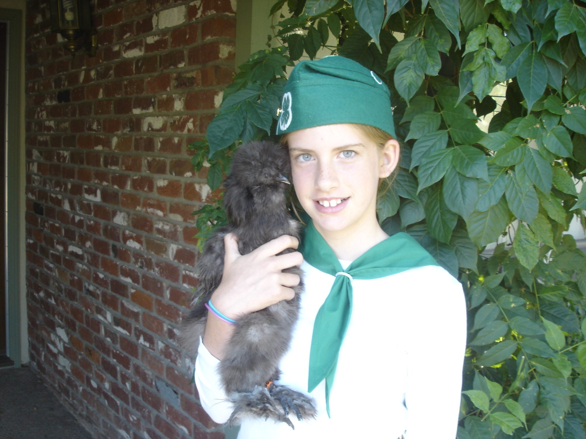 Are you just doing Showmanship with Pearl, or are you going to show her as well? I had a hen go broody right before a show and I ended up not being able to show her, because she plucked out all her belly feathers! She was a disaster! Then, she just hunkered down in the back of the cage. The judge told us in general (because there was another bird there with similar "issues") that they are unshowable. Just curious what you are going to do with her or if you have an idea to break her at the fair! LOL BTW, she is a pretty girl. I love your daughter's outfit! I've never seen those hats before, though. We have a white button down lab coat with my son's name and club embroidered on the front pocket for Showmanship. I'm so glad you posted this picture! This is so neat! I hope you put that in her record book, that is a great shot!