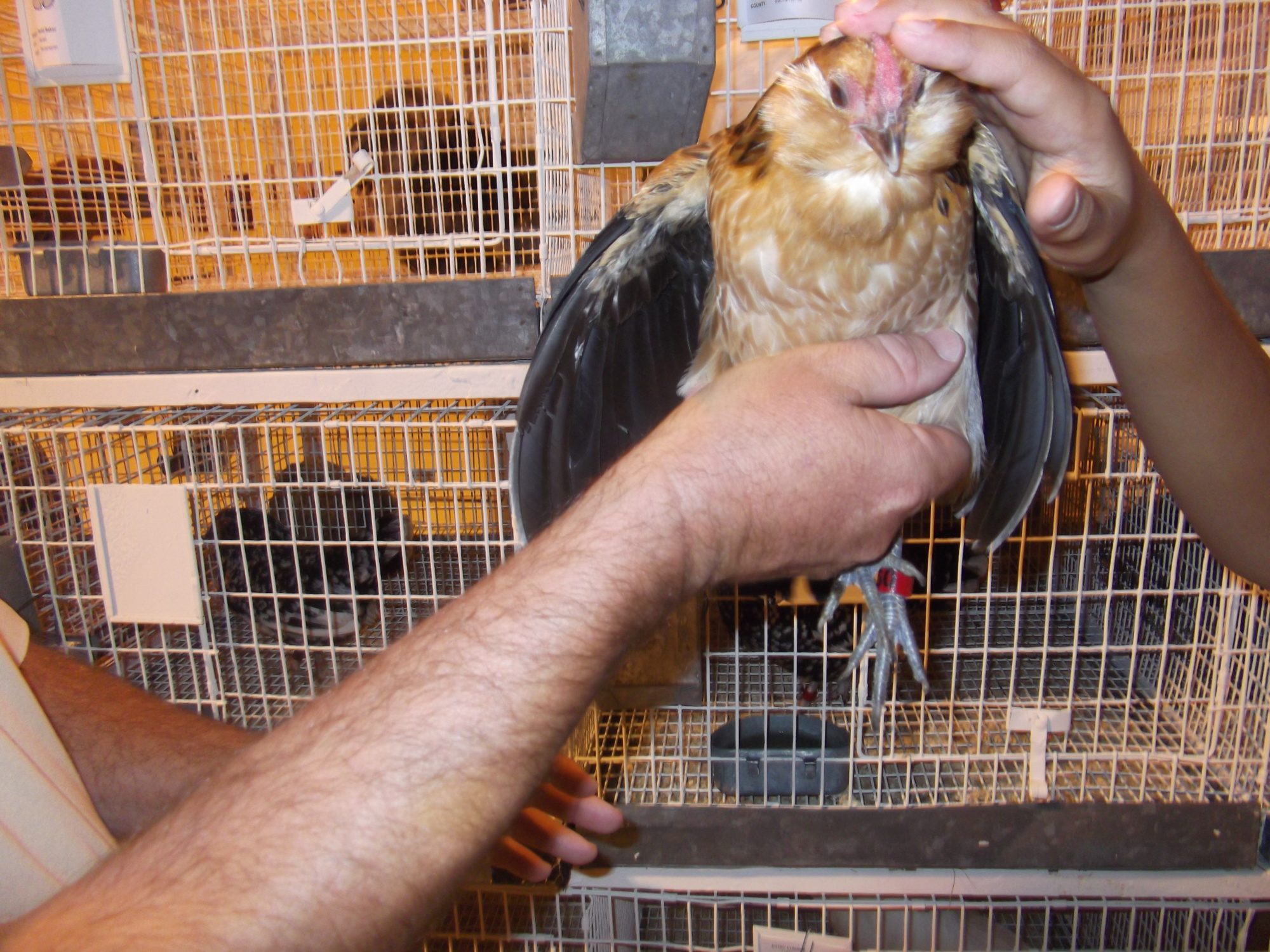 Oh, here's a picture of the D'Anver Jonathan fell in love with. The owner took her out and let him pet her. She has her wings spread, but she was very pretty and so tiny.