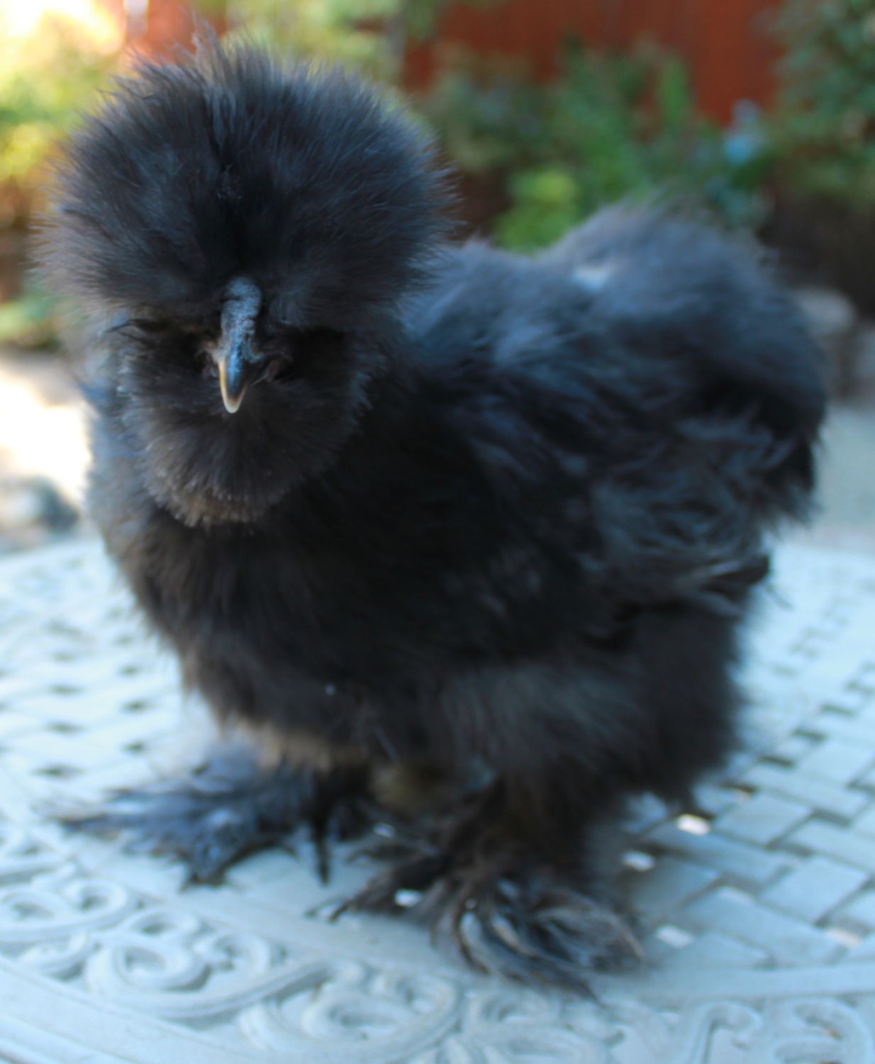 I really like the bearded silkies but, your pullet's coloring is easy on the eyes for me and looks greatThat seems to be a personal preference. I personally like the bearded birds better, but I love the non-bearded just as well. I have this blue pullet, 4 months old now. Non-bearded pet quality but I think she is absolutely beautiful.Even with that sad little hairdo and her flat back end, wings aren't great. She does have FANTASTIC foot feathers though! lol But I think she's great no matter what. I wish I had a better picture of her, this one doesn't do her justice...![]()