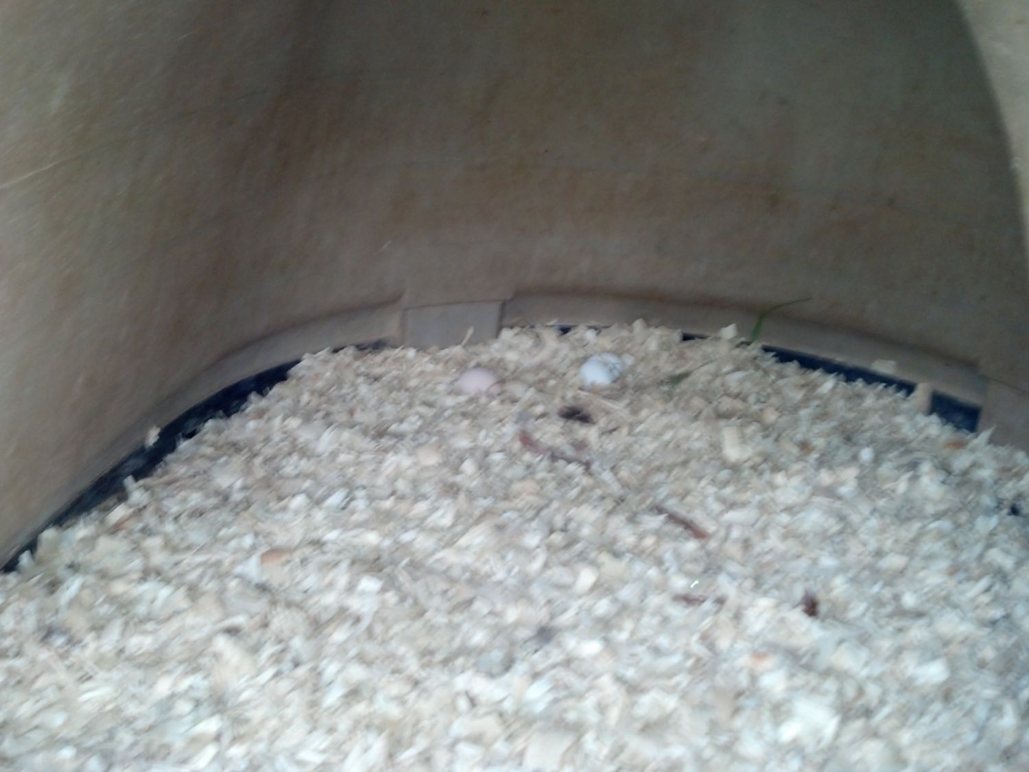 You can barely tell from this pic but way back in the back, my hen has started making a nest. Heres hoping she goes broody and will hatch out some babies for me(: