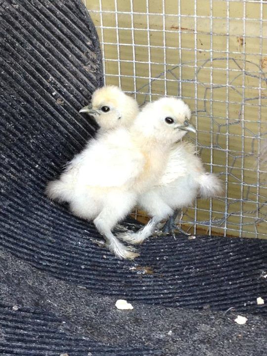 While these aren't technically pure silkies, they are being mothered by a silkie so I'm helping you all can help as this is my first round of chicks. My daughter's silkie, Pearl, went horribly broody. I just couldn't break her of it no matter what I did. I mean, she was stealing landscaping rocks, toys, and other eggs and trying to hatch them. I finally decided to just let her have babies. I didn't have any fertile eggs, but knew someone with day old cochin x silkies. My question is (sorry for the long background info) what color will the dark one be? They seem to have picked up mostly cochin traits; 4 toes and single combs. She is lighter on her underside, kind of a yellow. I was thinking splash or blue...but I don't know what these colors look like as chicks.