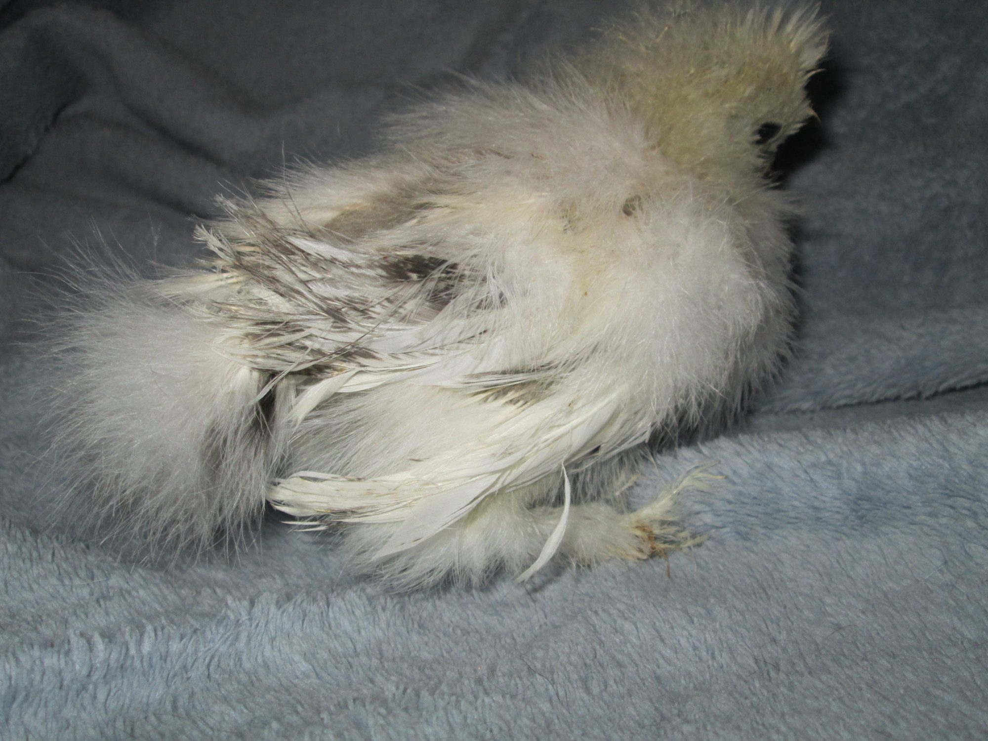 My silkie chicks from a mixed color flock, they are almost 6 weeks old now! The grey is my favorite!