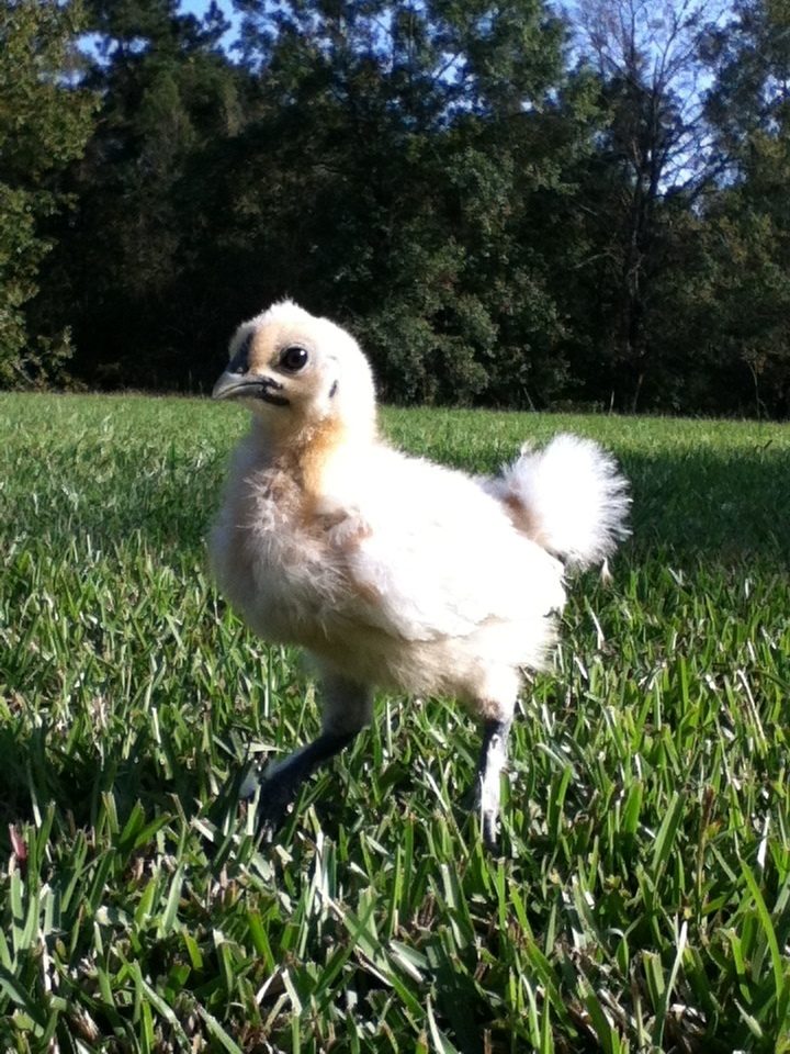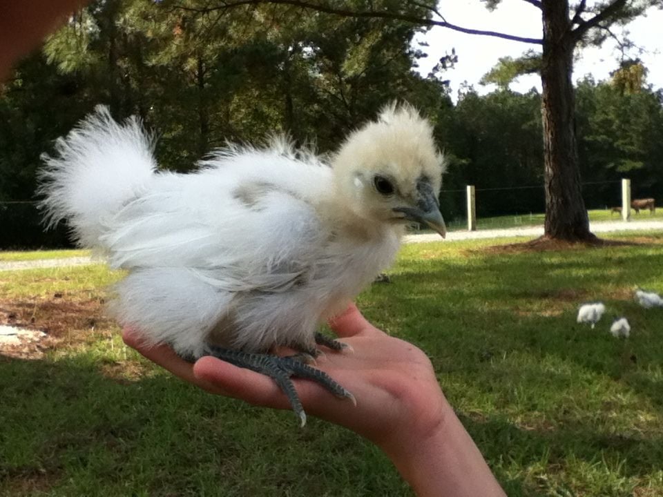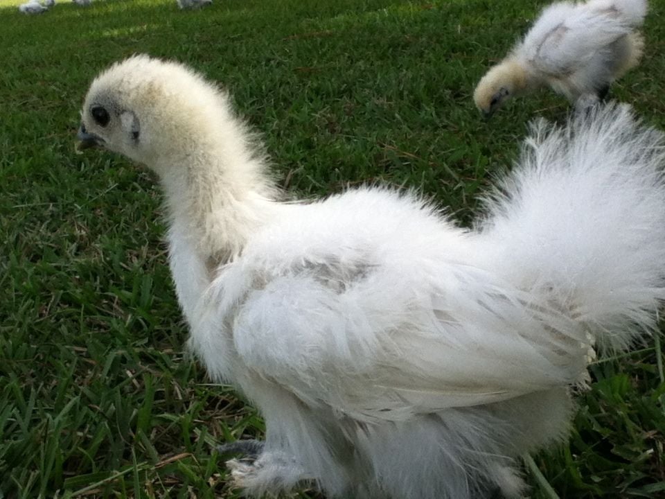Wow! I'm seeing some pretty silkie's here! It's my turn now. There's 17 in all, but I'm giving three to a friend, and later selling white silkie cockerels. This first one is Danny, he is one of my favorites! But I'm gonna have to get rid of him.