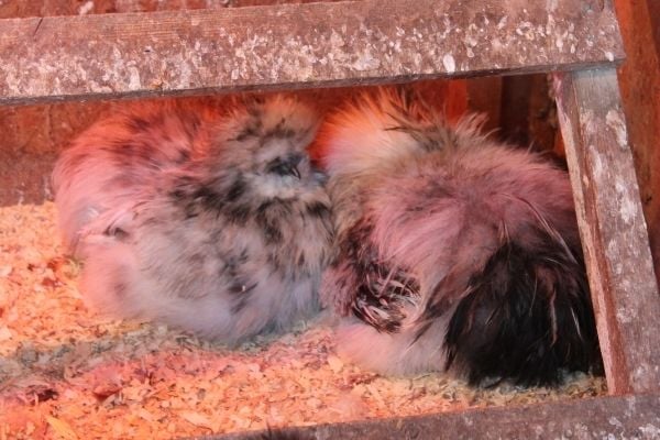 Look at these two boys cuddled up. lol Gotta love the silkie roosters.