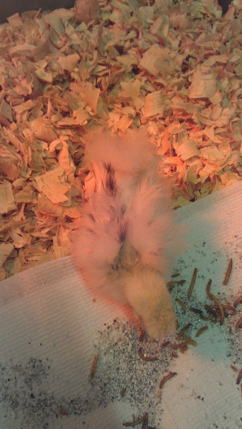 Hello all! This is the first time I have posted here, but I am mother to 3 black silkie babies, 2 self blue, 2 blue, and 2 paint. I am so proud they are all varying ages between 4 weeks and 2 weeks. I raised the blues and blacks from day old chicks, the paints I just got yesterday. One I think is frizzled. They, along with 3 blue sizzles and one mottled sizzle were an anniversary present from my husband. He = the best. Id like to here some opinions on the paint peeps. I need to take pictures of the others too and get some feedback. Ive noticed that my black silkies have some very different formations of facial hair already. I need that diagnosed...but that is for another post...on to the paints. The regular silkie paint is Spot, the frizzled paint is Rorshac. Hope for one roo one hen of course.