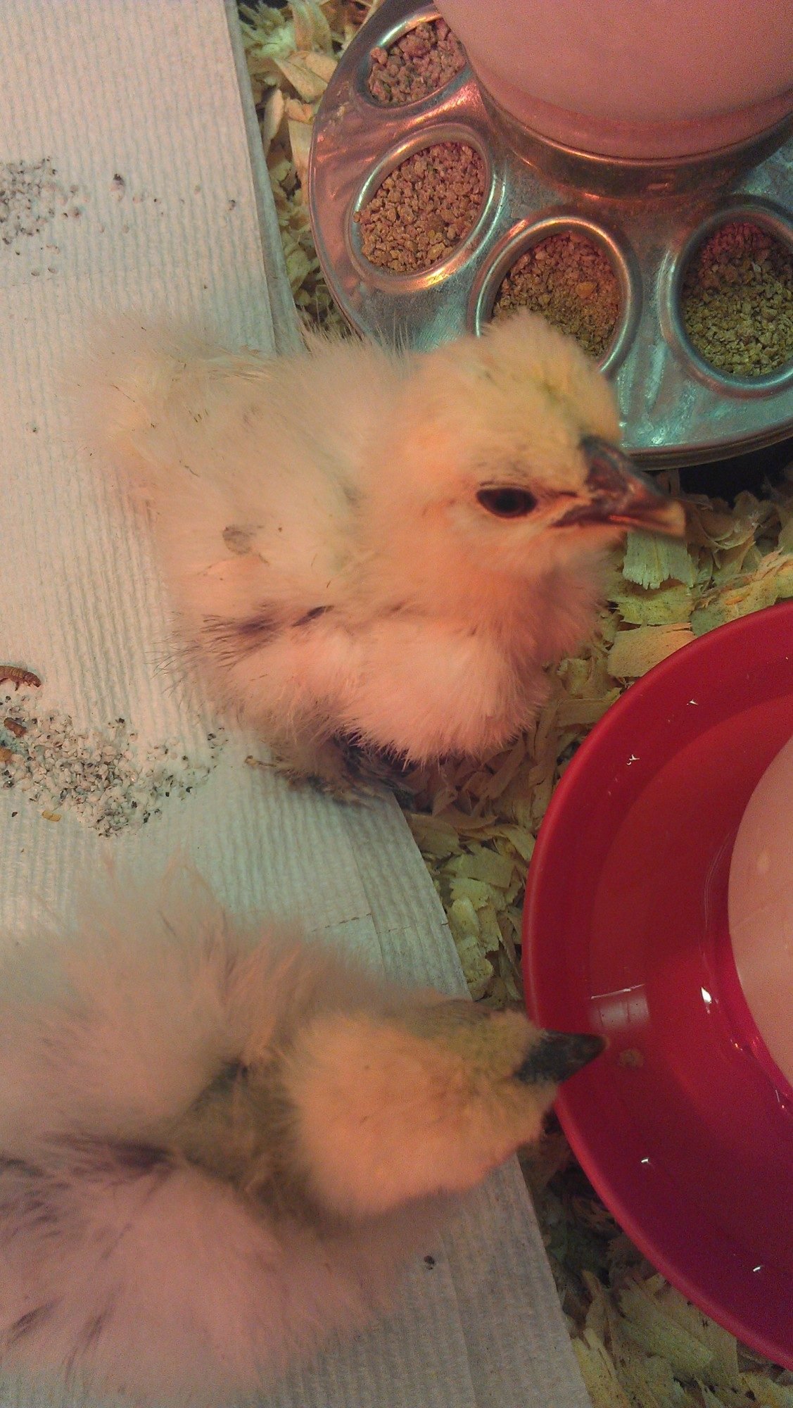 One I started to call Satan because it pecks your fingers. Well I noticed on it and it only a comb. NOT a walnut comb, tho they all have small bumps on thier beaks, but a normal chicken comb... I know they are silkies as thier starter feathers are like silkies and some are getting tuffs on thier heads. But Satan...is giving me a HMMMMM moment. What do you think.