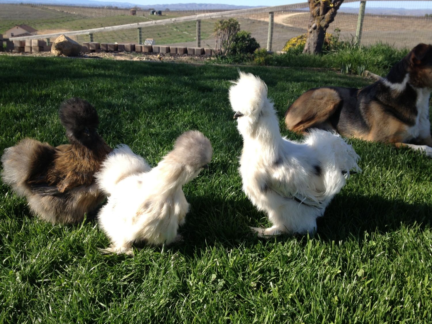 I got 3 Silkie chicks for my very, very broody hen a couple of days ago. She's THRILLED with her new stepchildren!