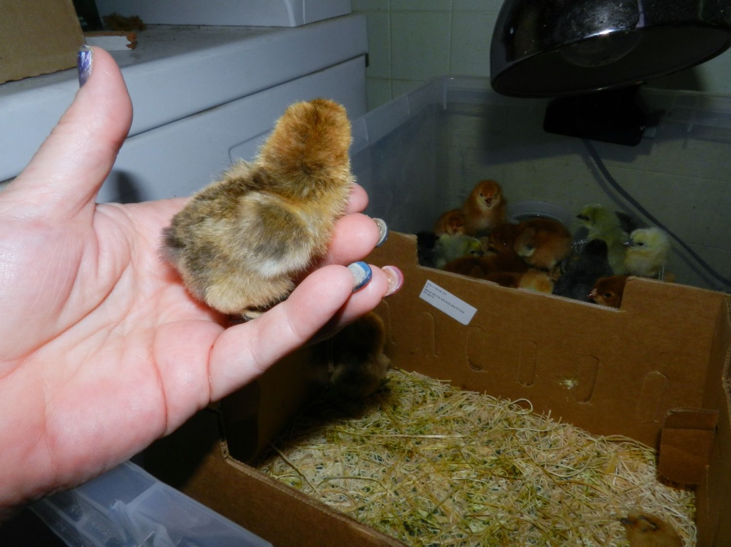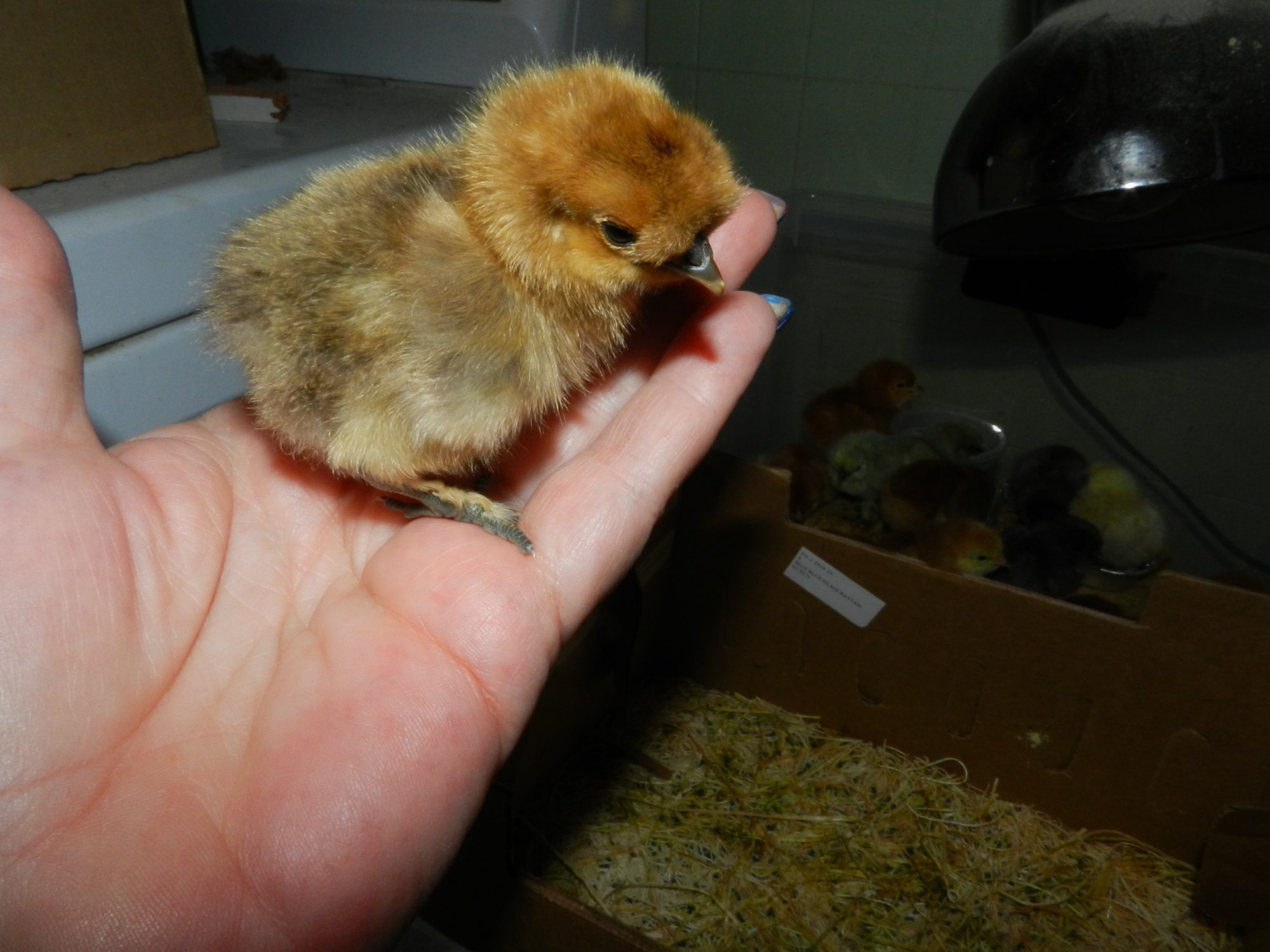 The kids have only been here for 3 days now and I put them right to work. And their mom! We had an Easter Egg Hunt today at the farm with 6000 eggs that we filled by hand. Every single one of them! Mom and babies were in a box at the registration table where people picked up their tickets. I missed it all but apparently the chickens were a big hit! And our visitors learned a little something about Silkies also.