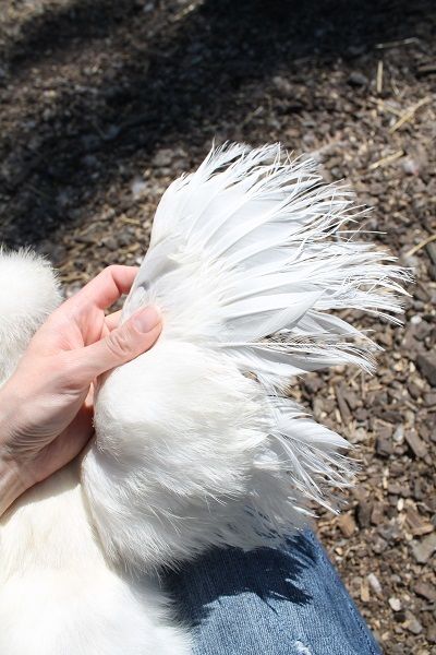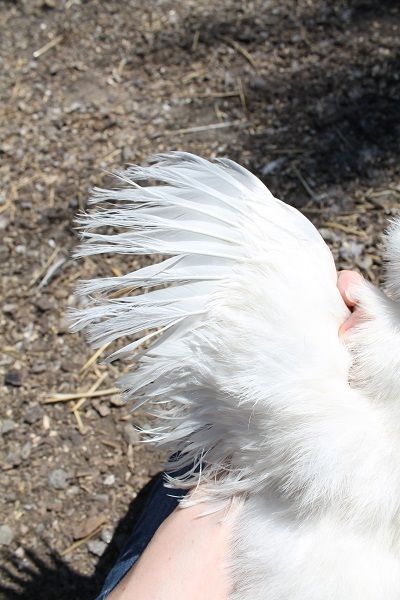I don't think her type is the best possible, especially for a white one. I think her feet are ok, except for the feathering. She's got a good comb and wings. I just don't know enough about the quality of whites yet to know if I'm way off on my assessment here. lol