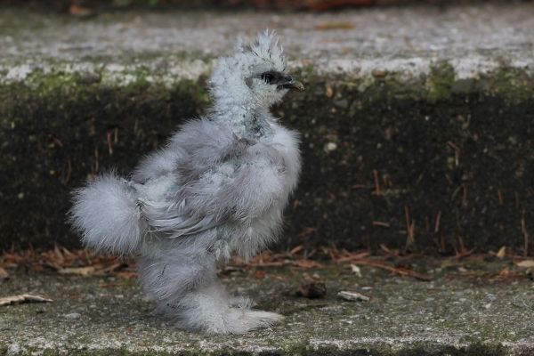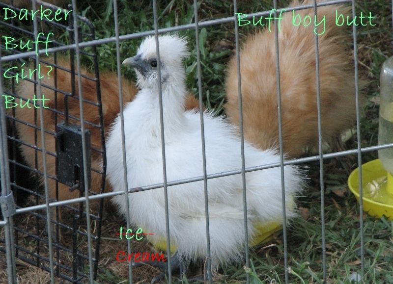 Yours are so cute. I am glad to hear that this to shall pass. I look at them and kinda of wonder did I get messed up versions. There is a good size difference between the two white silkies. One was much smaller; yet spunky.I don't know why - but that stage is my absolute favorite stage. The gawky teenage stage with the firecracker tails and hair up in rollers.. It goes away so quickly (sort of like the fluffy down stage) but they are just adorable! Mine are at the "little adult" stage - mini copies of what they will be when they get bigger: