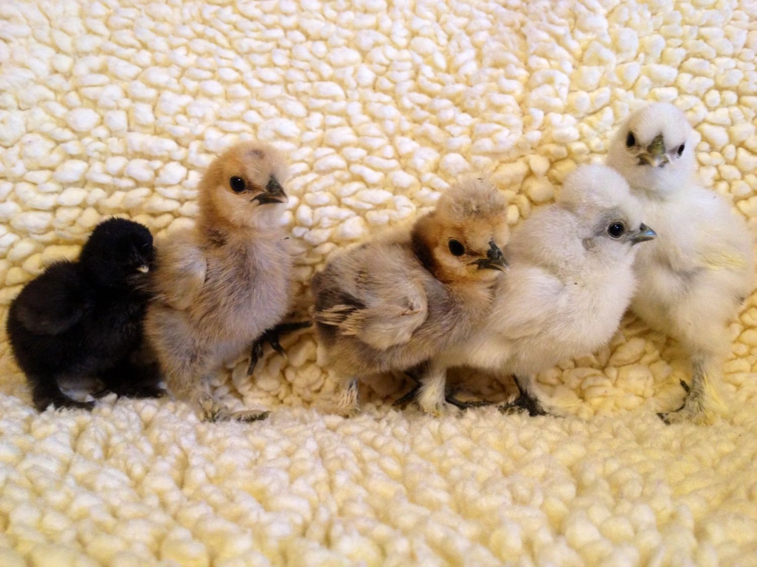 I just wanted to share my new babies with you guys :) Chicken genetics are crazy! Mom is my beautiful Calico Silkie and dad was a buff. I got two Snow White, 2 brown, and one Jett Black (hatched today). Two of them have them have the prettiest vaulted skulls :) I am in love!!