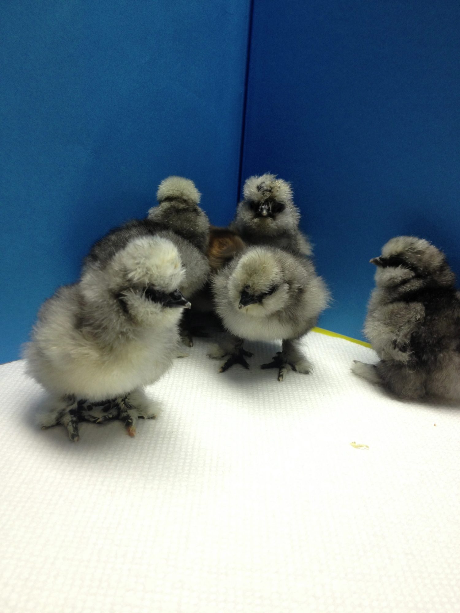 So cute - love that stage. I have 4 inside.. and my broodies are hatching out some now two - they have three.Here are our new Silkie babies from Kelar. They are the first Silkies we have ever hatched. They are so cute and fluffy! Im so glad my daughter begged me for them. <3