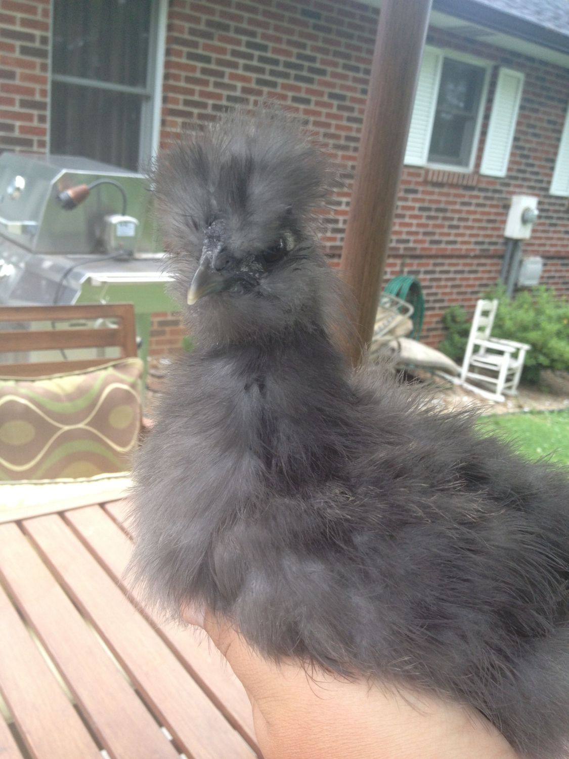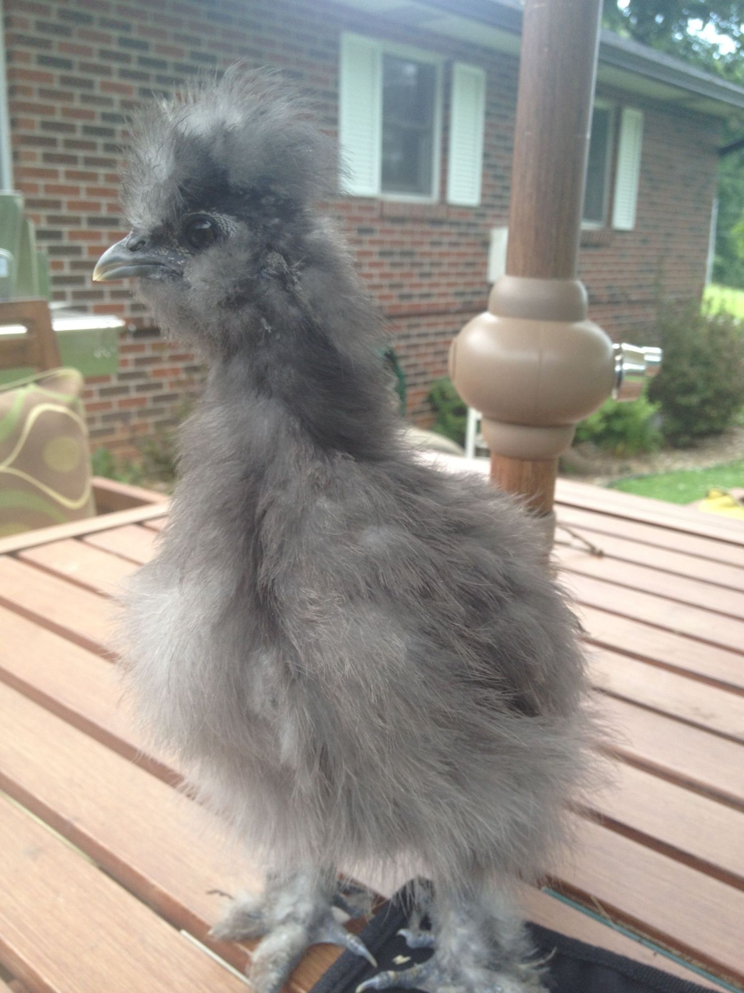 Beautiful!I have 2 13 and 1/2 week old Silkies. They are so cute and fluffy, and have an adorable personality! I am not sure if they are roosters or hens yet but am hoping they are both hens! One is a blue named Baby and one I am unsure the color of named Mimi. It is either a blue or a splash. It has the wrong face coloring. Here are some pics. I love Silkies!!!!!!!!!!!!!!!!!!!!!!!!!!!!!!!!!!!!Mimi