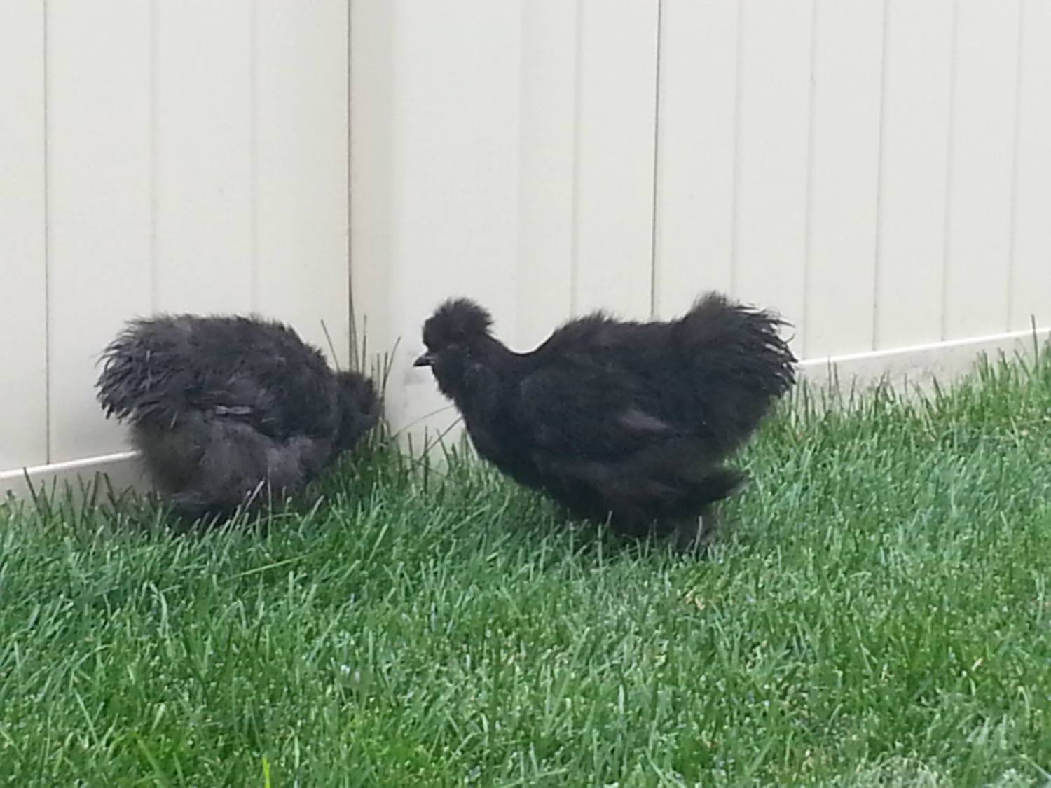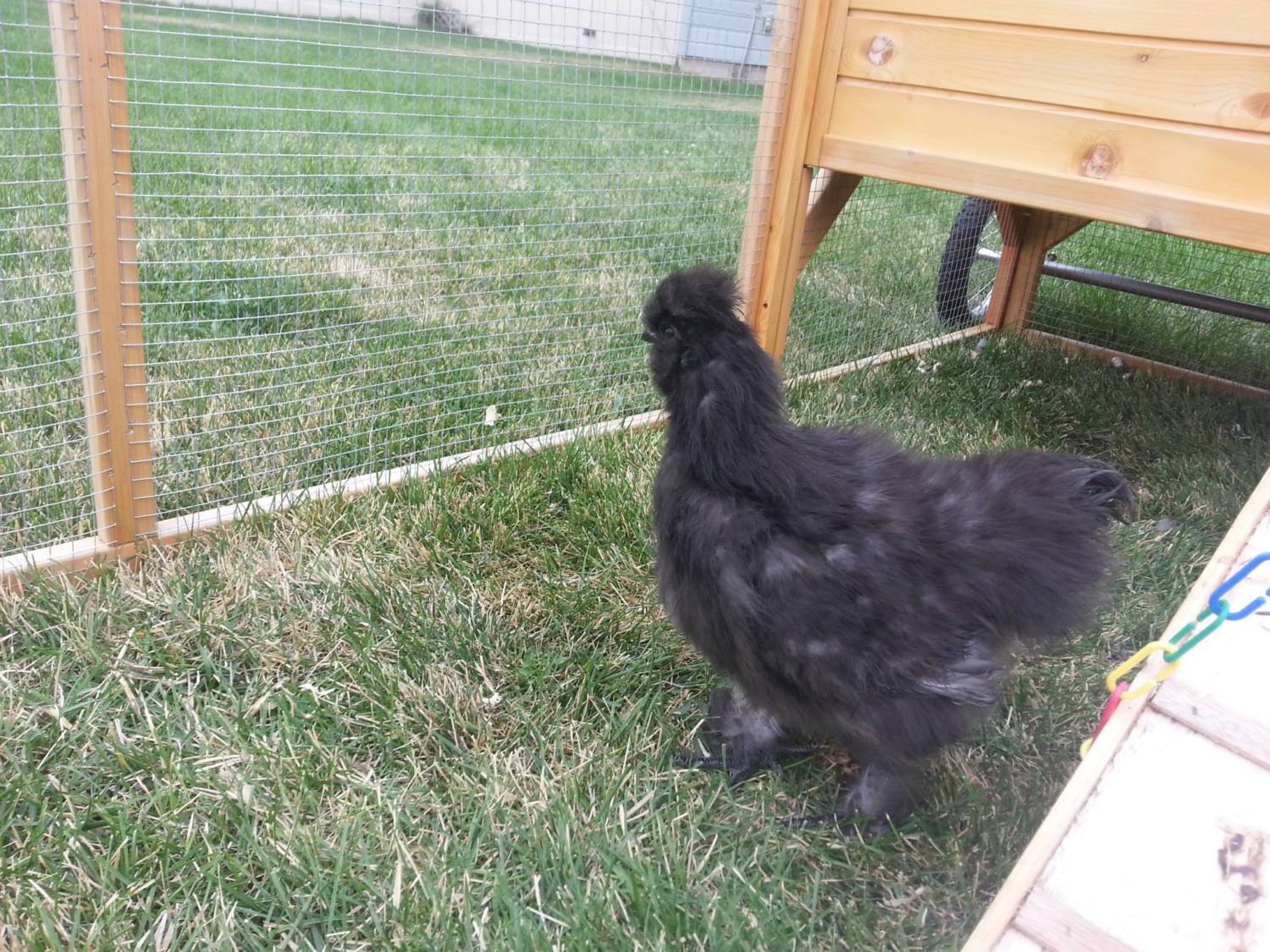 The Professor's only four months old now. She hatched April 3rd. All my silkies are six months old or younger, so genders are just educated guesses based on head poufs, behavior, wattle and comb development. The Professor did babysit the brooder chicks when we integrated them into the flock -- first the Three Amigos and then the Fab Five (yes, we have chicken cliques. The Three always hang out together, the Five stick together and then there's the Main Flock). She didn't baby the Fab Five very long because the Five includes Tails the cochin rooster, who very much acts like a rooster, and didn't want anyone else messing with his little flock, thank you very much.