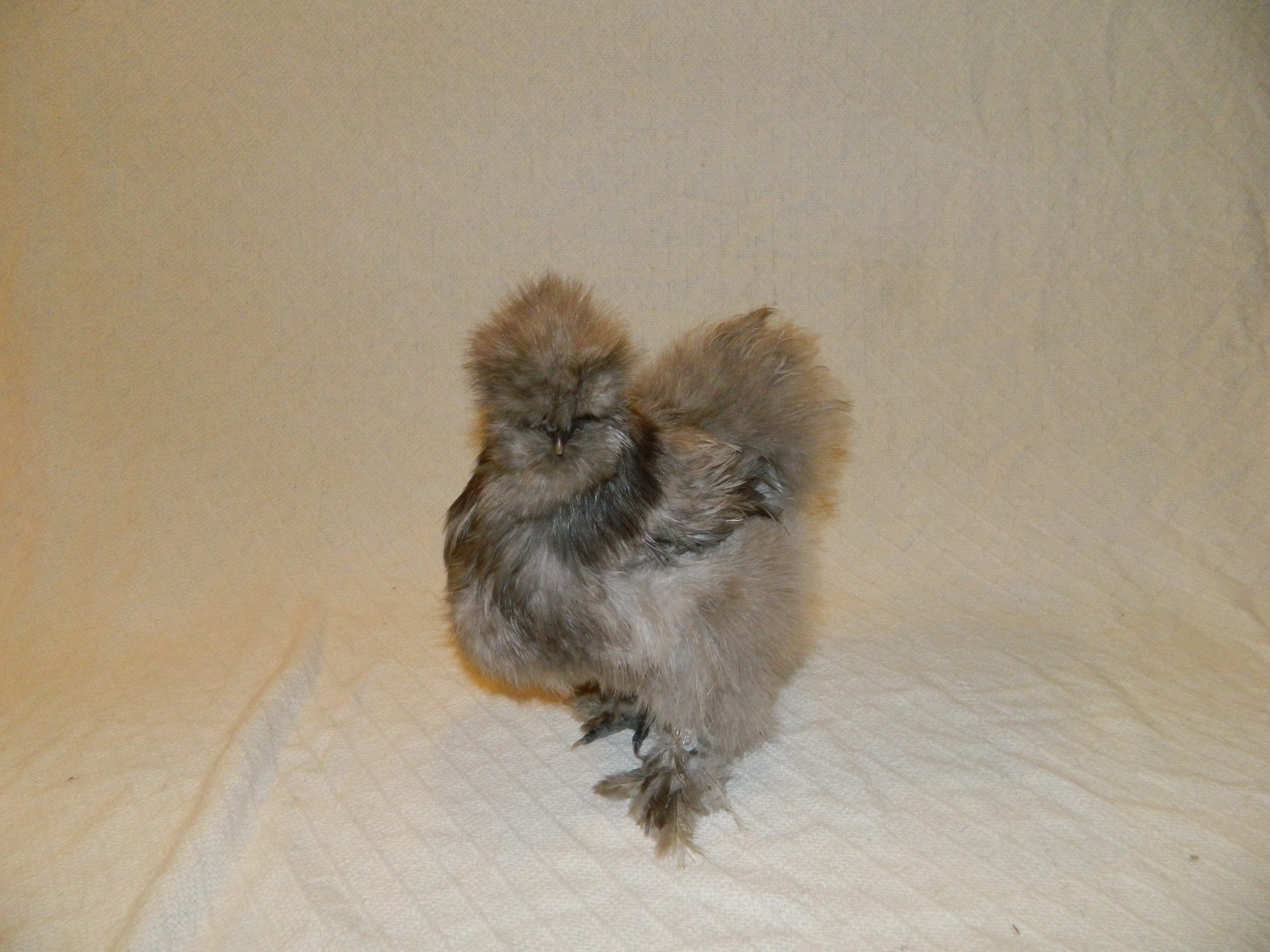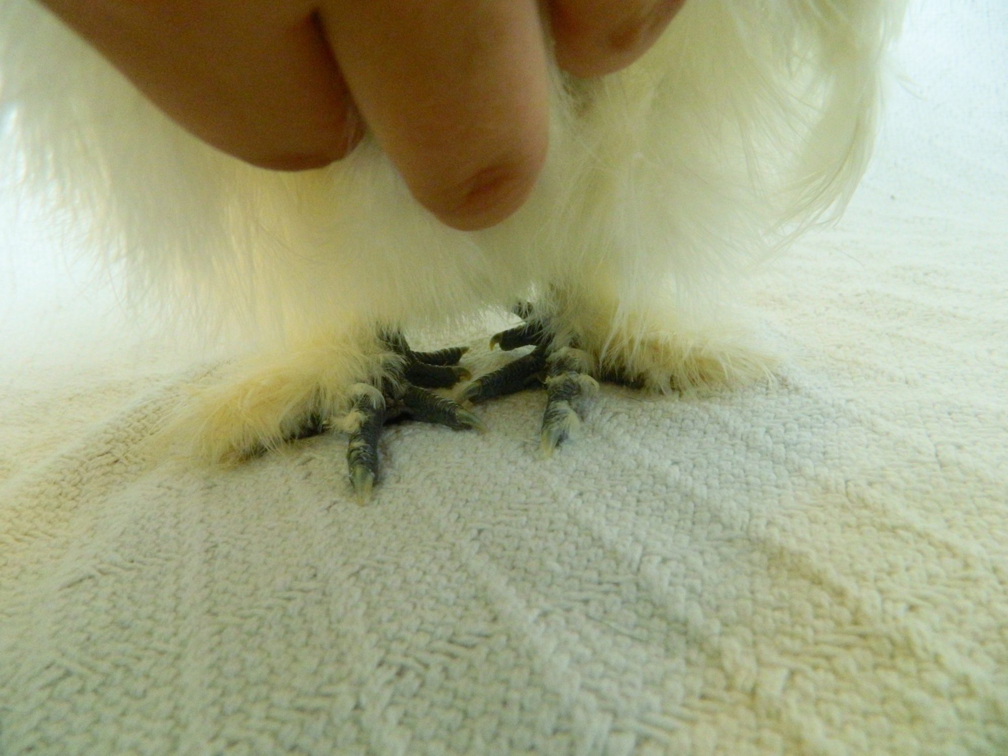 I posted a pic of my new Silkie chicks last week they are a silvery white color. This week they are getting wing feathers and I they both have a darker color maybe black coming in on a section of wing but not on both wings. What does this mean in the code of Silkie colors?