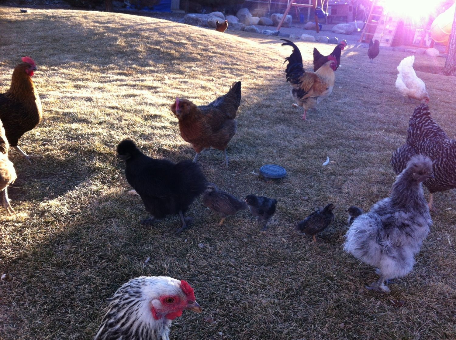 my silkie roo chick whose 11 weeks old I was wanting to get him a chicken diaper but idk how much more growing he has . He is already close to mu hens size. He's a hair smaller. He prefers indoors over out. I introduced him to my hen who pecked him and I usually let him outside and my rooster got out and attacked him and chasing him about.