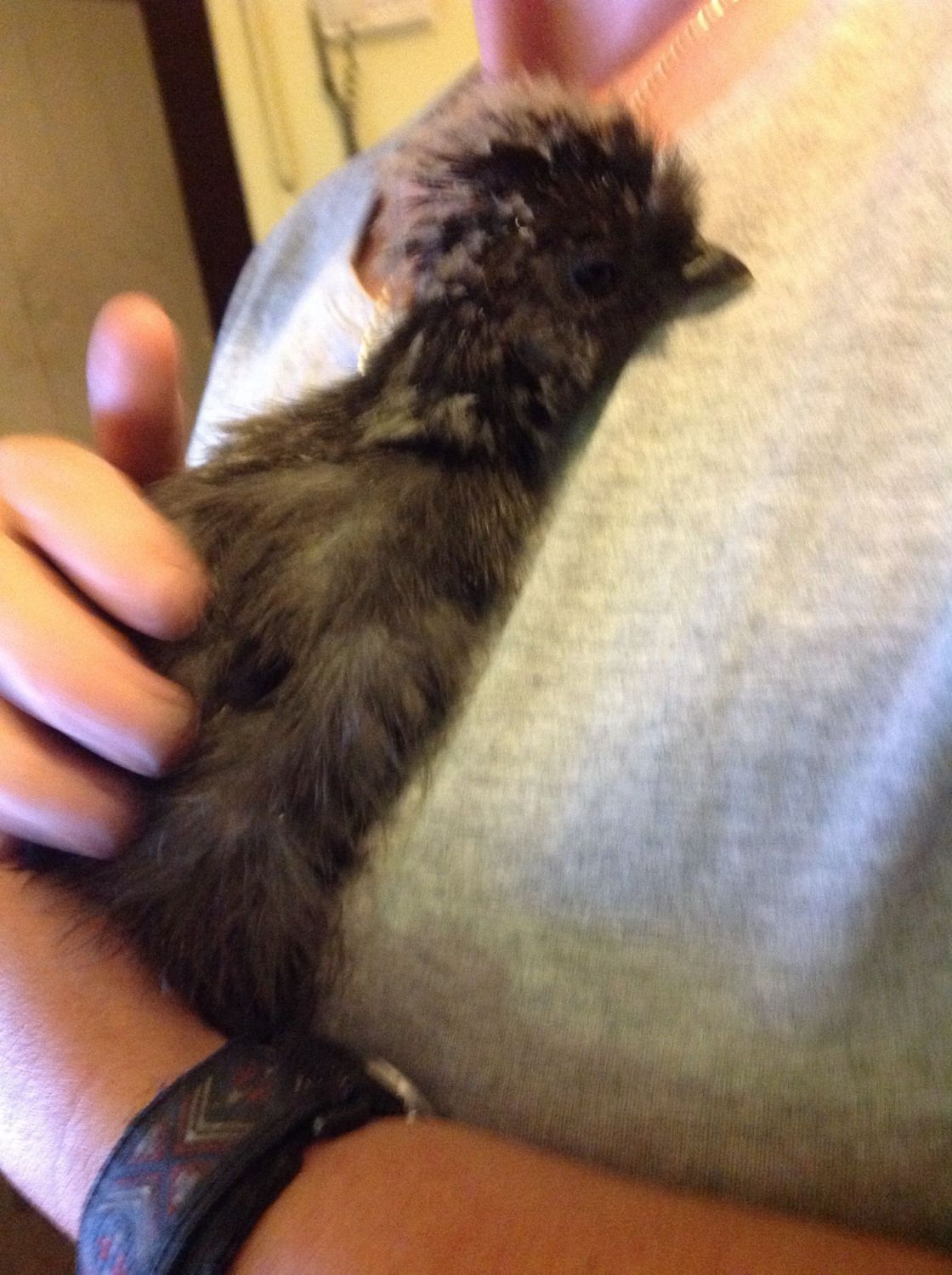 Did you post this on the BYC thread "people with house chickens" - they would love to see this photo. Extra spoilt chickens on there LOL. Out of 5 chickens we've kept in-house for quarantine purposes the Silkies have been the best to keep indoors - except for the extra fluff that gets in the way of wearing chicken diapers. We don't use velcro diapers since the fluff sticks badly to it so I made my own diapers using very soft underwear elastic uncovered and large safety pin for the x-crossing on the back.