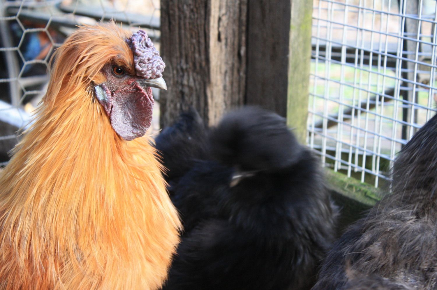 I don't know whether they are siblings or not, they are all from the same breeder, but she had a couple of roos and several hens. And I am holding out on deciding whether Clem and FeFe are male or female. I am new to silkies and unlike cochin, determining sex is a bit more challenging. And I would hate to give away two beautiful silkies and later find out they were hens.