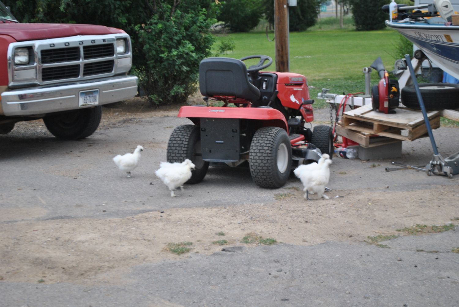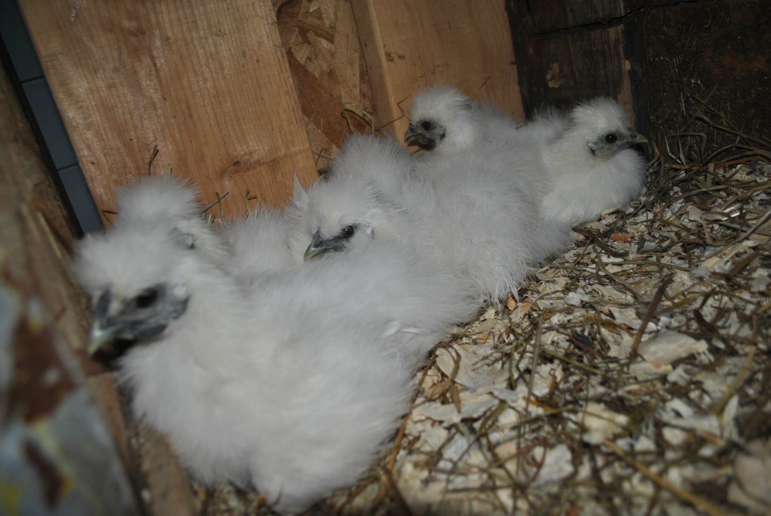 Hello andHi I am new to this site. I have 5 white silkies (chickens with leg warmers) I think I may have a couple of roosters but not sure. Does anyone know how to tell by sight a male? Also at what age do they start laying and what size egg? I have been told a few different things so not to sure Thanks these are some pics of our chicks.![]()