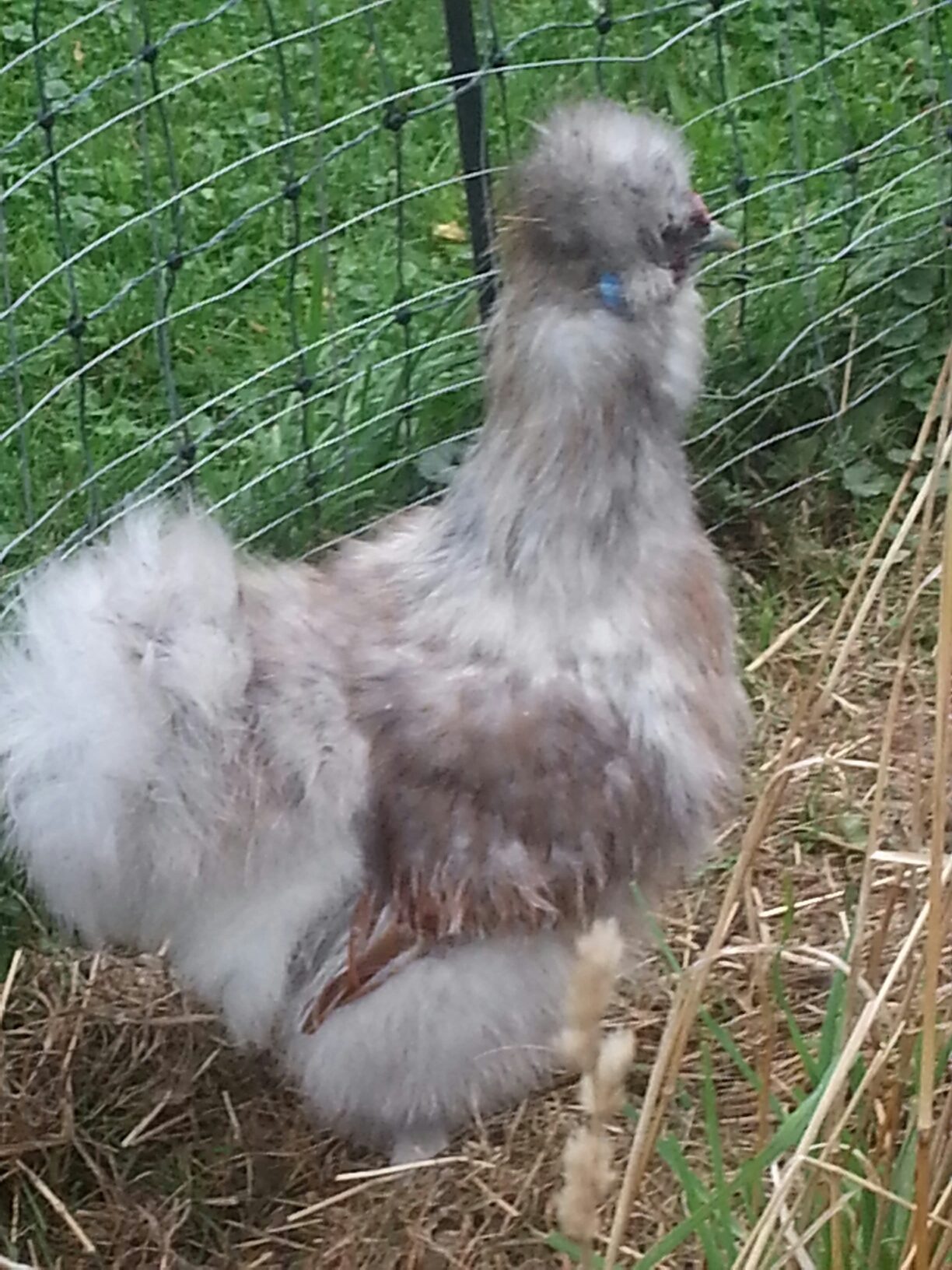 I have two young 15wk silkie roos (I assume - they are both crowing!) that are beautiful, but I am not sure which colors they are. I would like to breed them next spring with my white silkie hen, and wondering as well what color results I might with this mix? How many can they hatch successfully? I know they are good mothers! I have been looking for another silkie hen, especially black, but no luck yet. We just LOVE them!! These three silkies live with 13 other large breed chickens (they are all 8wks old) that they have been raised with. I am attaching photos for any thoughts!!