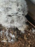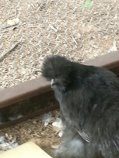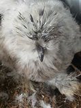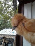 This is Pearl, she had wet feathers on her/his head today but has no comb to speak of either